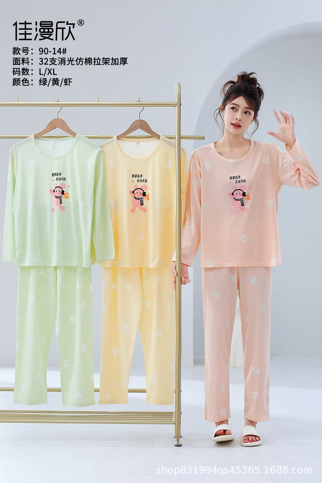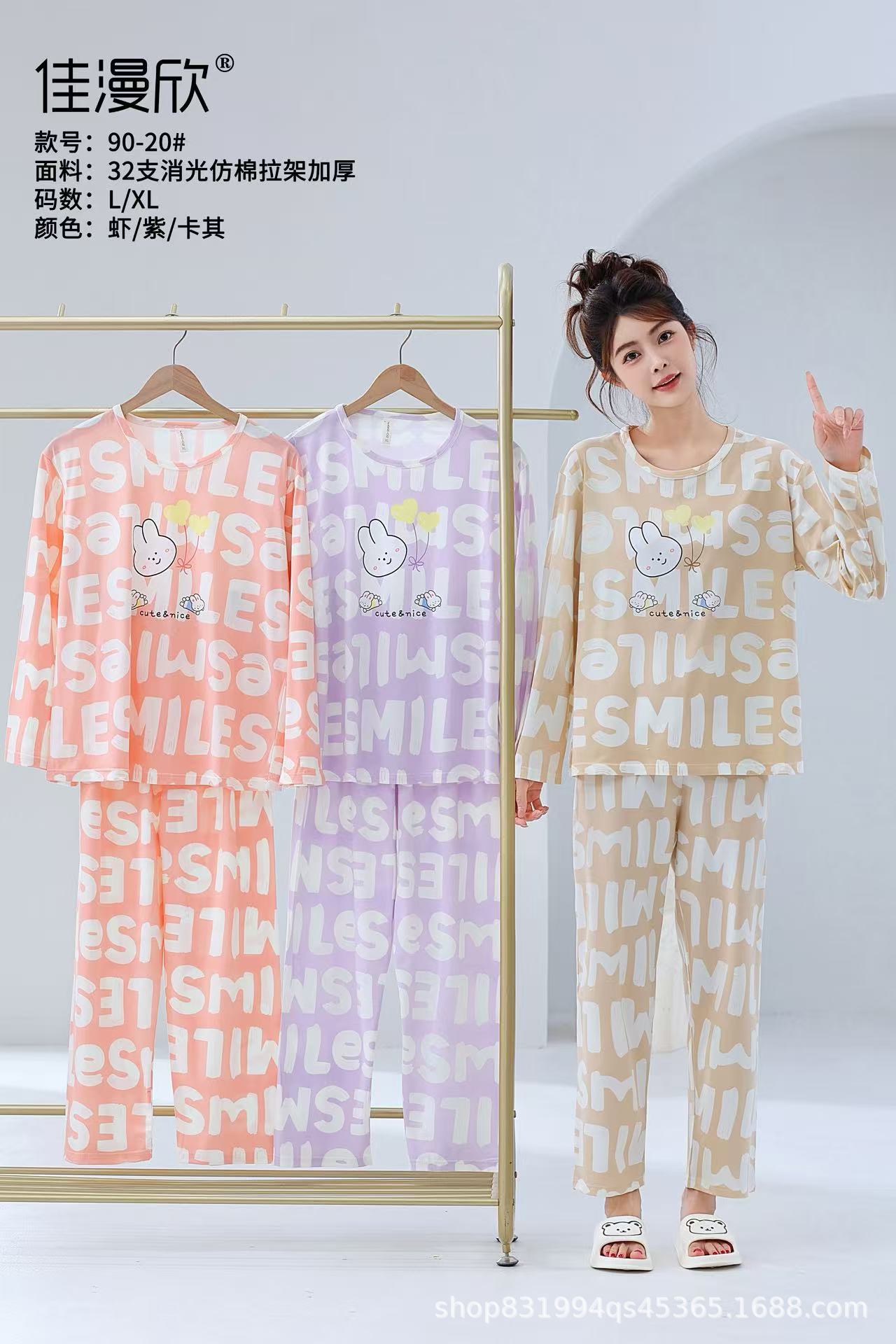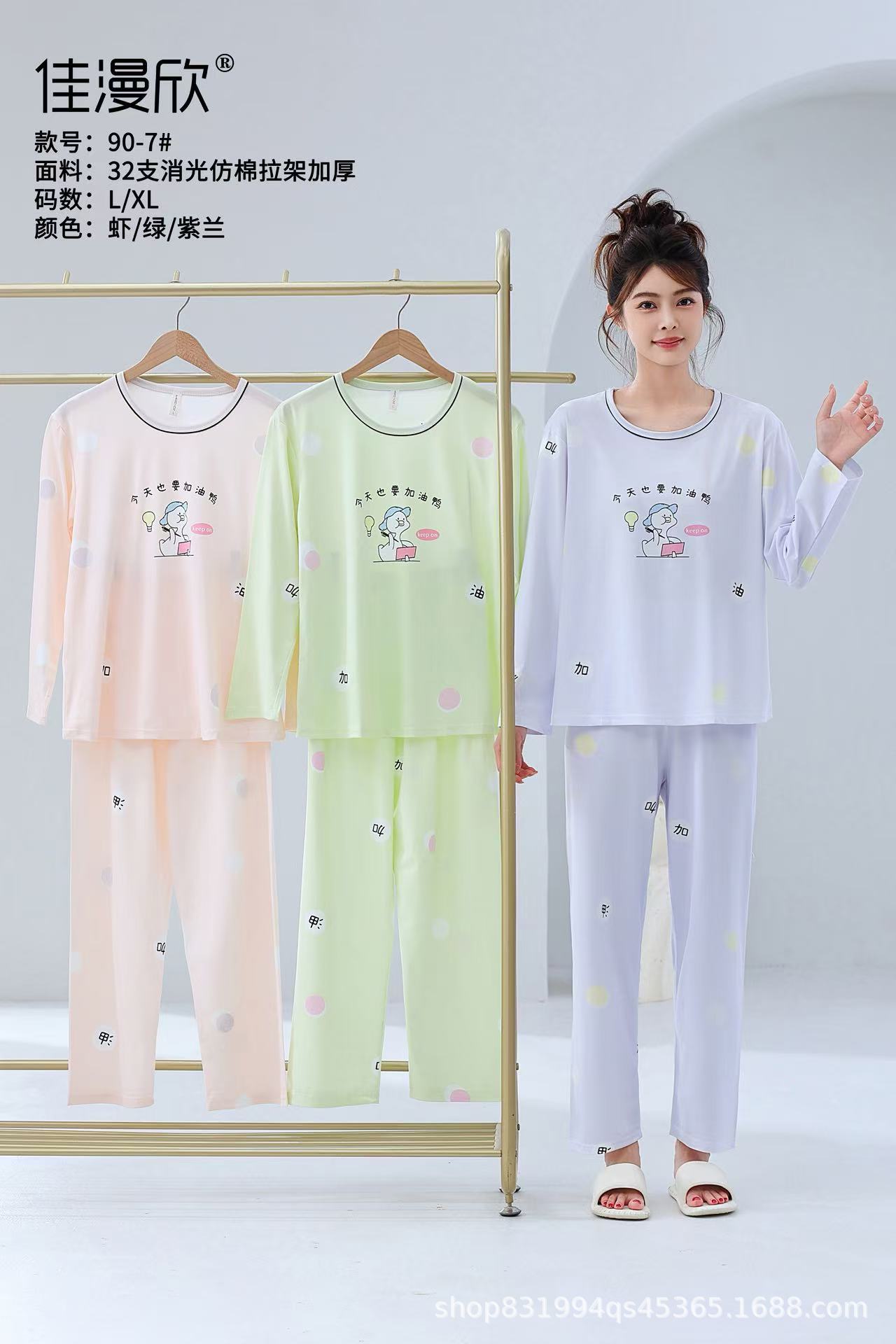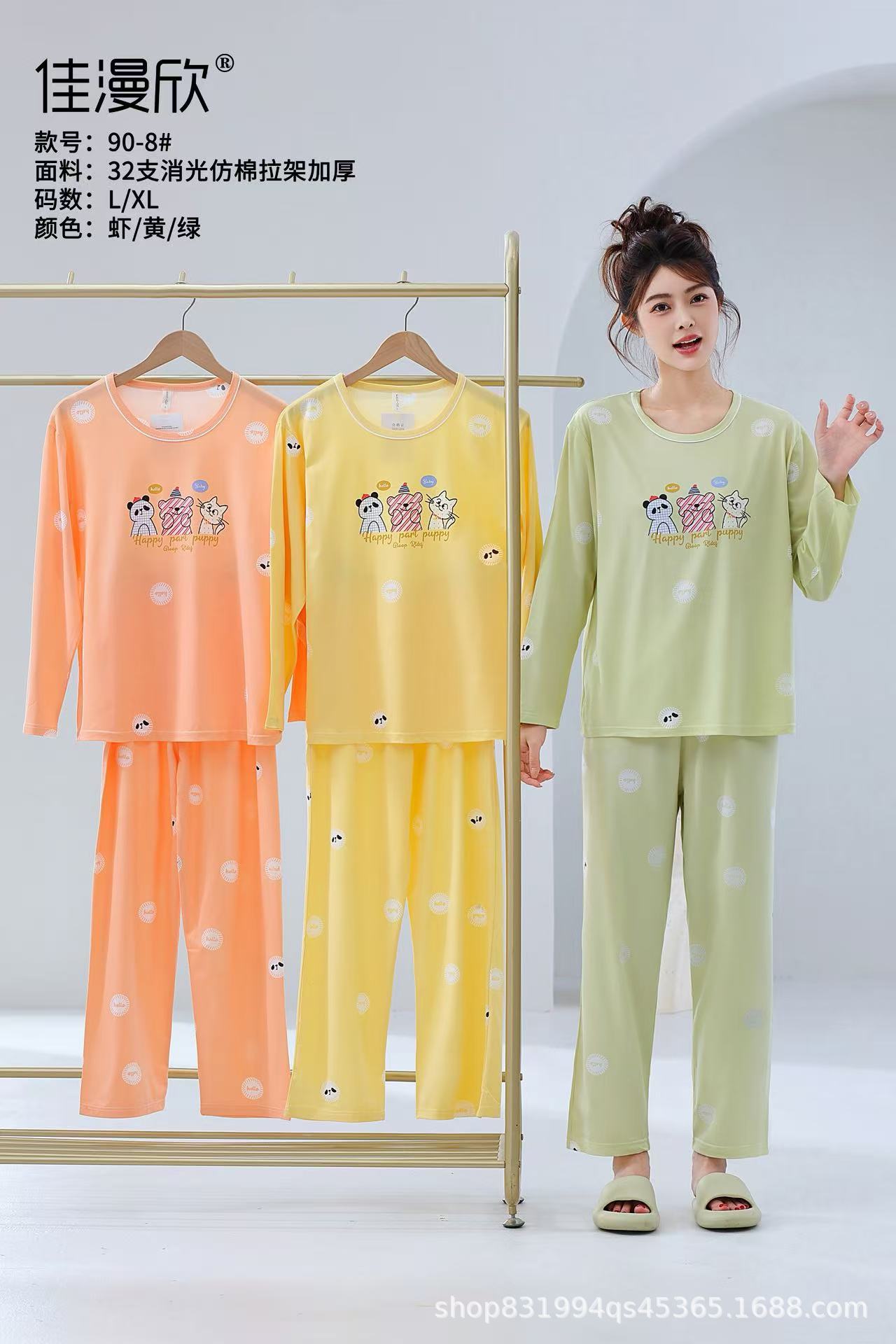 Jia Manxin 대외 무역 가을 여자의 긴팔 풀오버 잠옷 인쇄 우유 실크 라운드 넥 캐주얼 만화 세트 홈