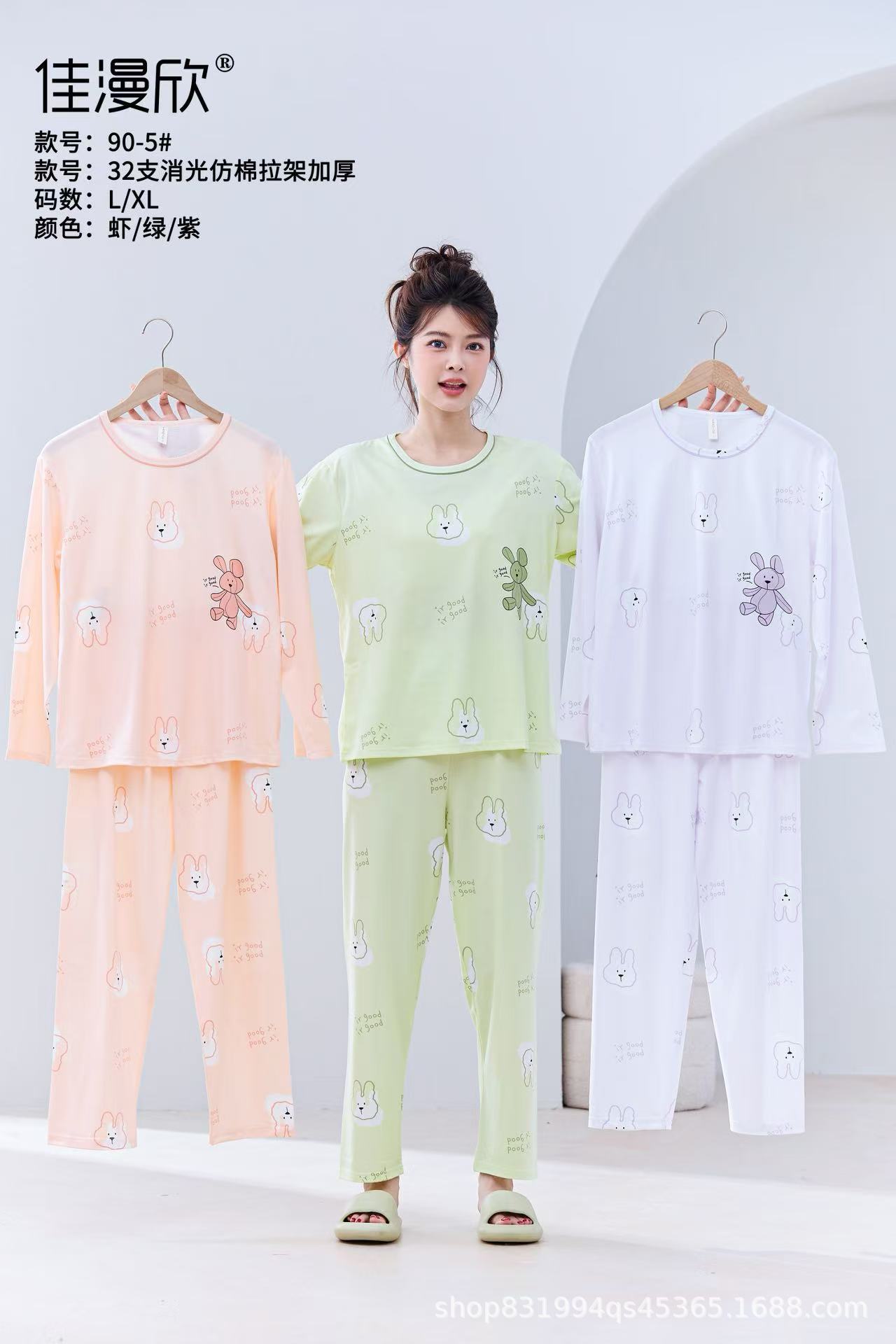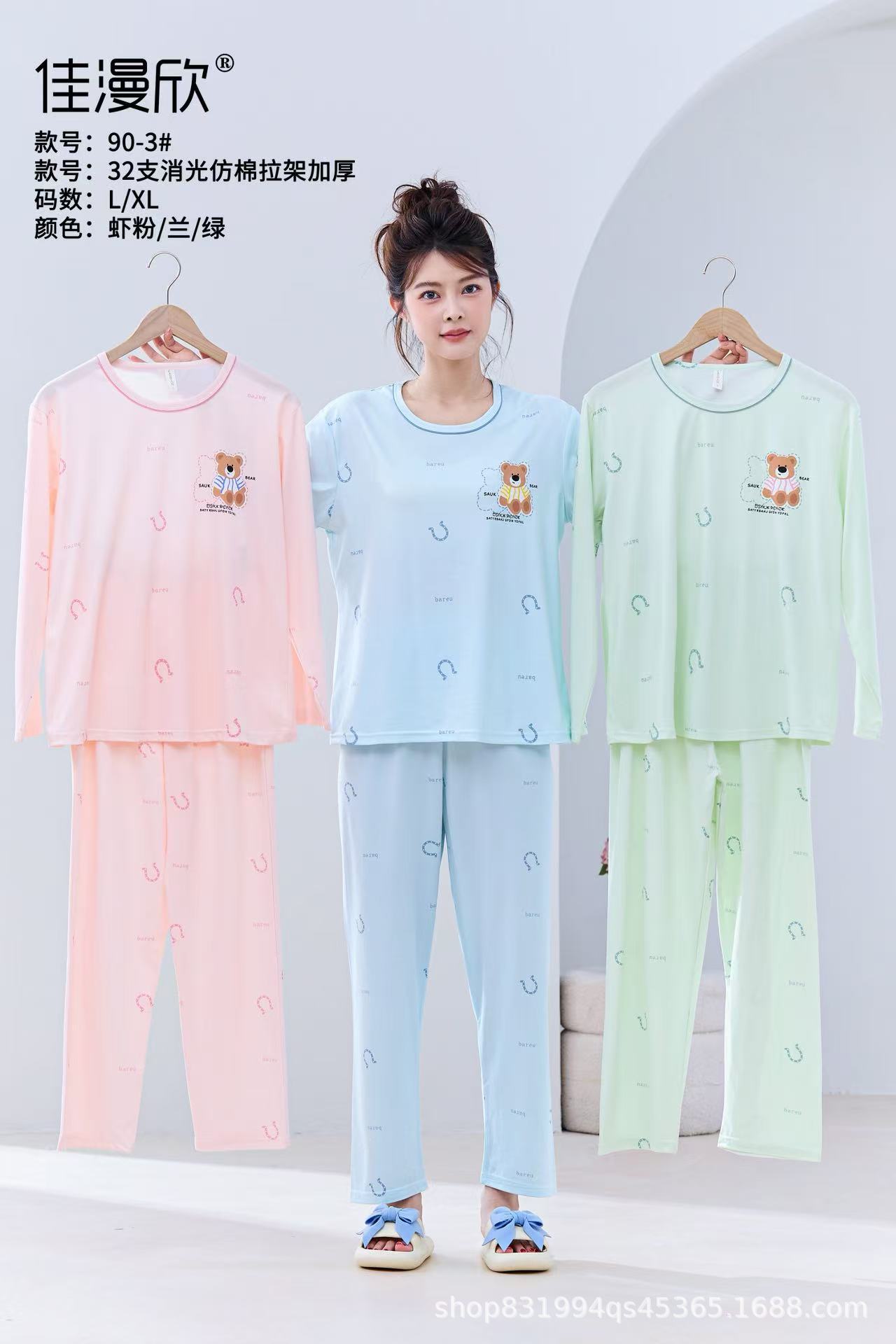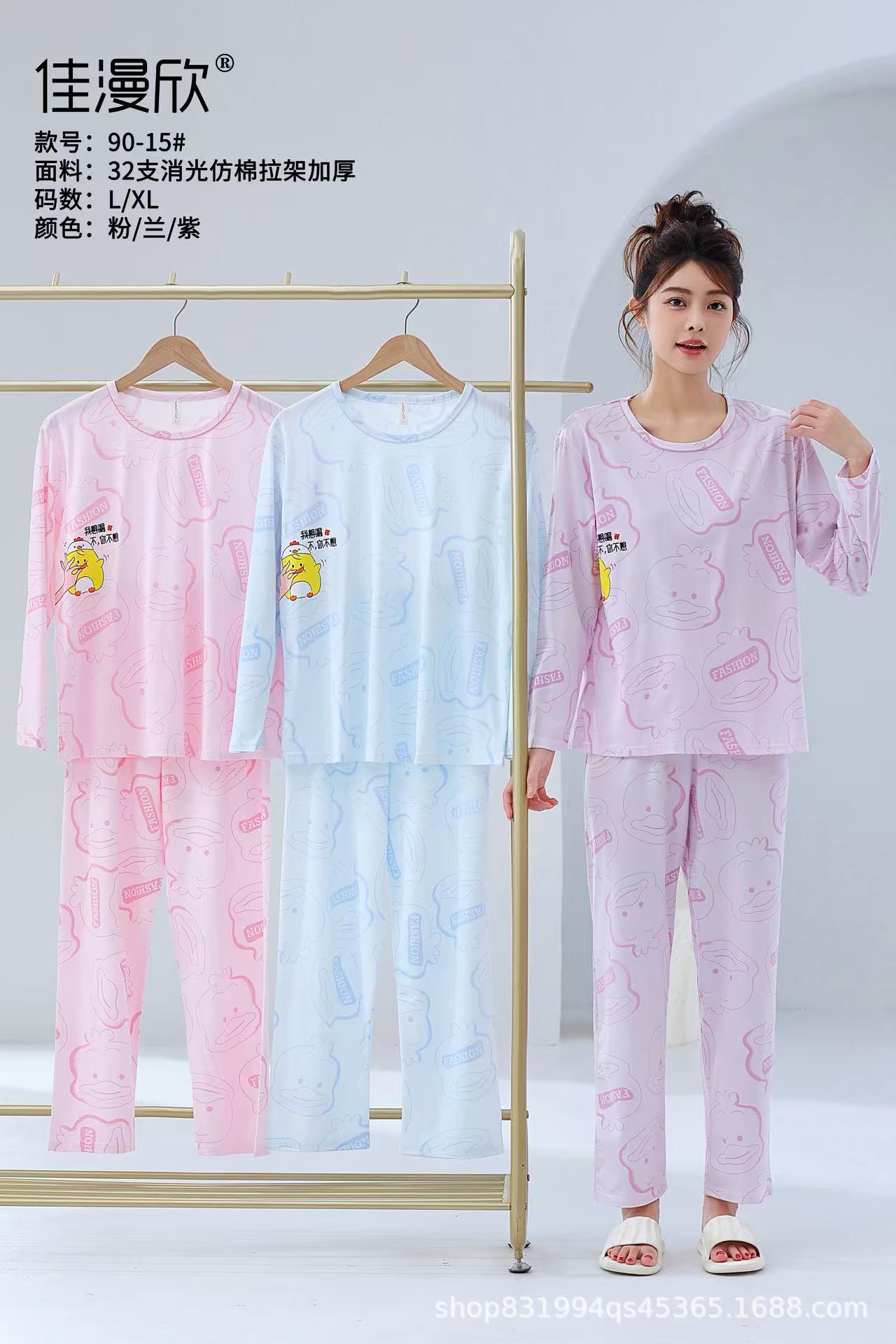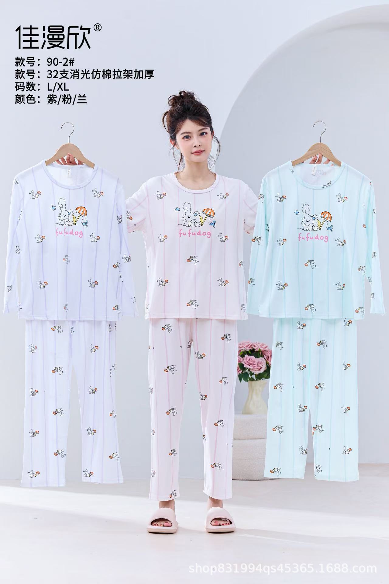 Jia Manxin 대외 무역 가을 여자의 긴팔 풀오버 잠옷 인쇄 우유 실크 라운드 넥 캐주얼 만화 세트 홈