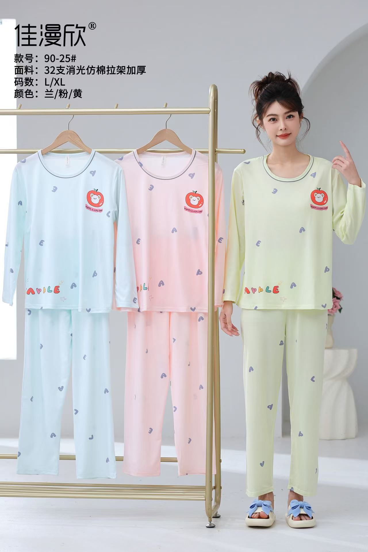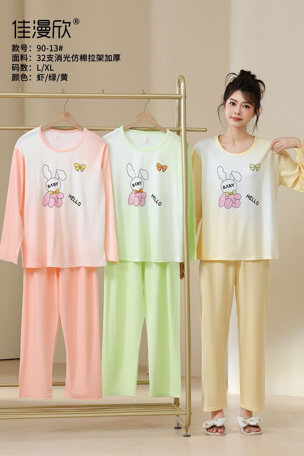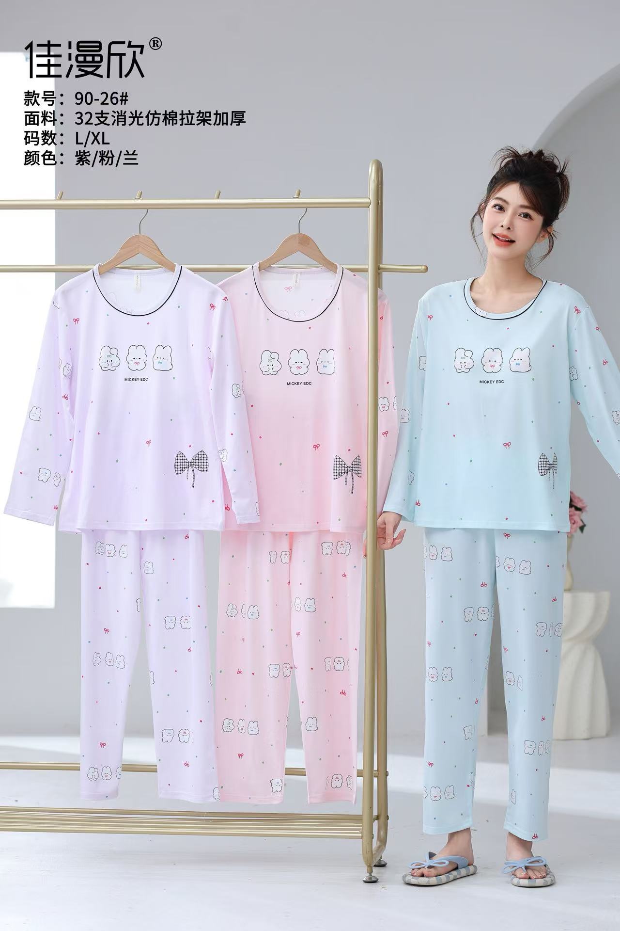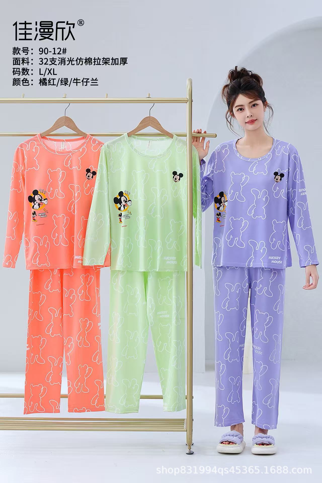 Jia Manxin 대외 무역 가을 여자의 긴팔 풀오버 잠옷 인쇄 우유 실크 라운드 넥 캐주얼 만화 세트 홈