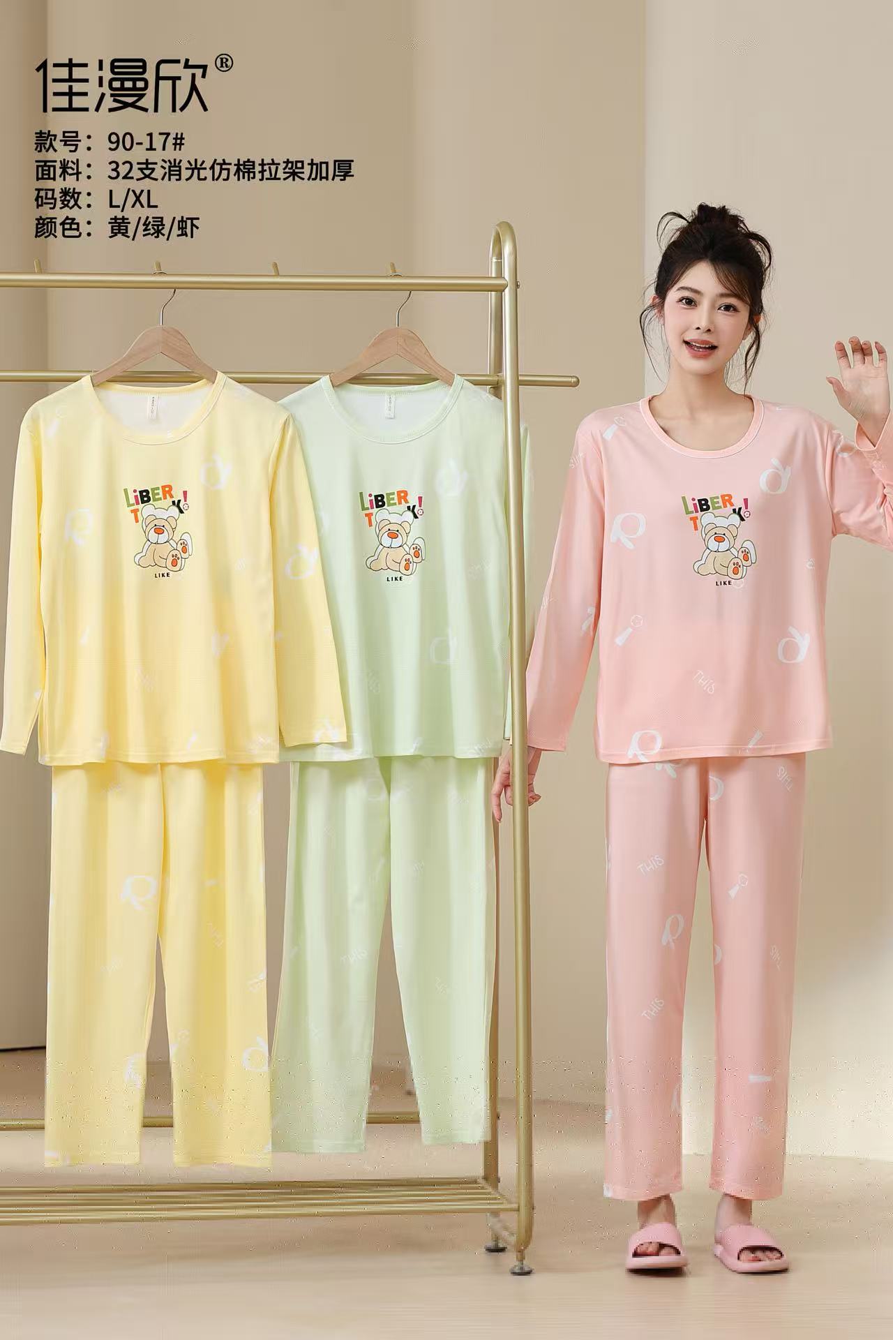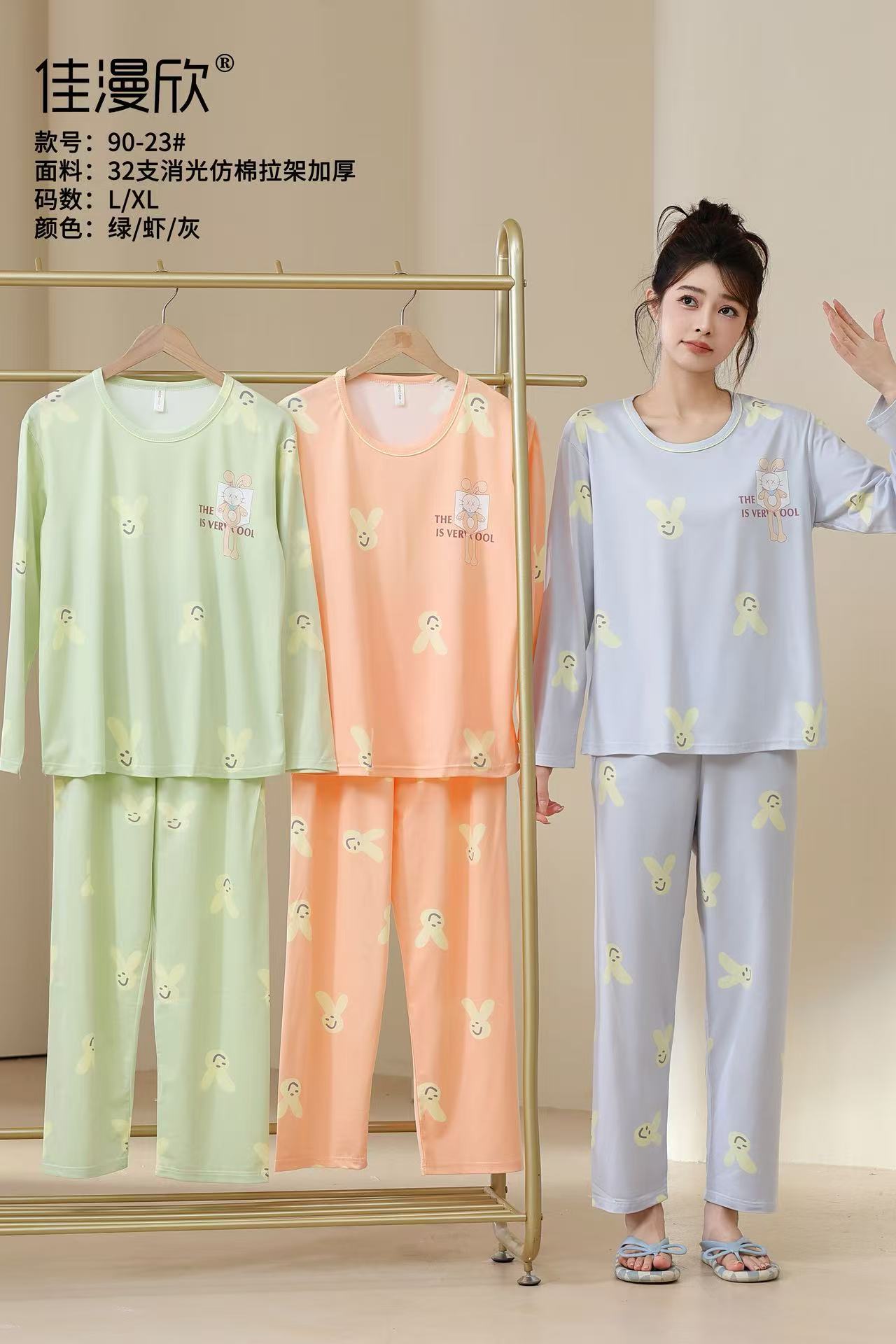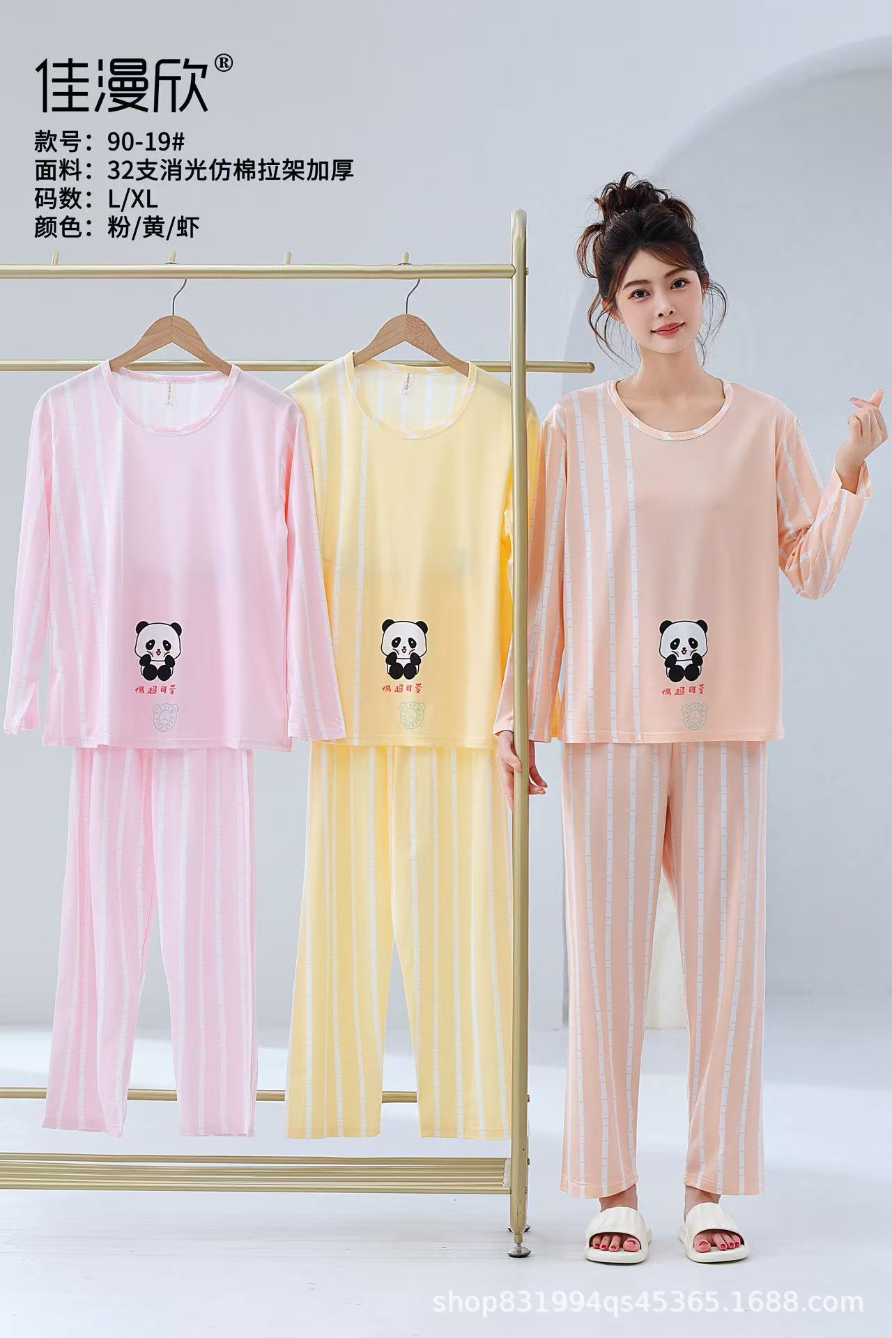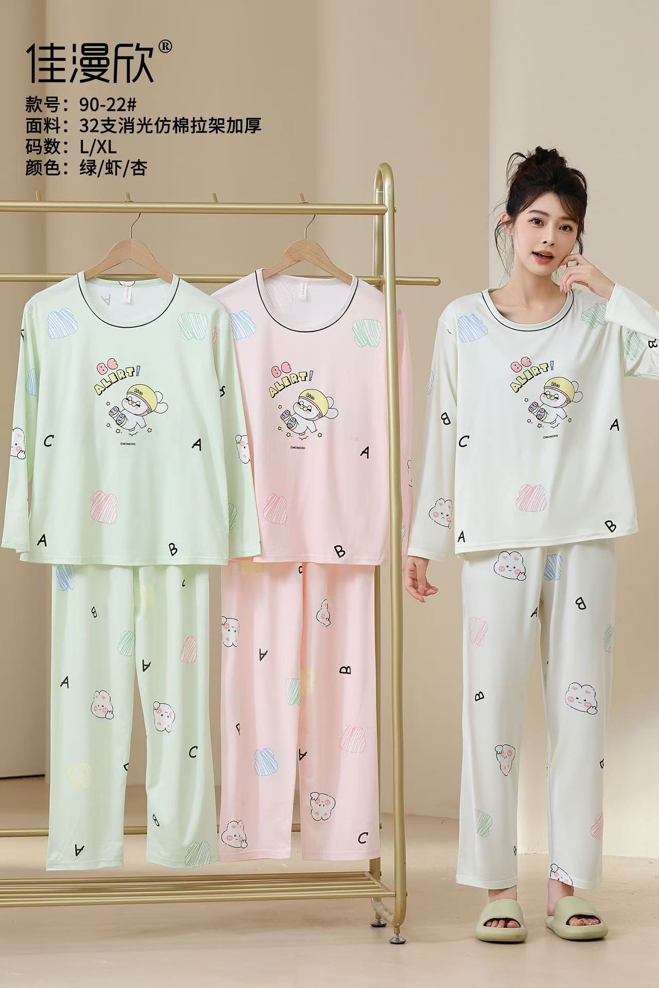 Jia Manxin 대외 무역 가을 여자의 긴팔 풀오버 잠옷 인쇄 우유 실크 라운드 넥 캐주얼 만화 세트 홈스토어 가기