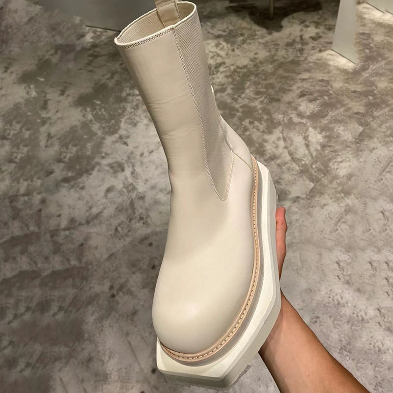 남녀공용 첼시 2026 신상 레트로 두꺼운 밑창 튜브형 라운드토 미드컷 바이커 마틴 부츠 캐주얼하고 다용도로 활용 가능