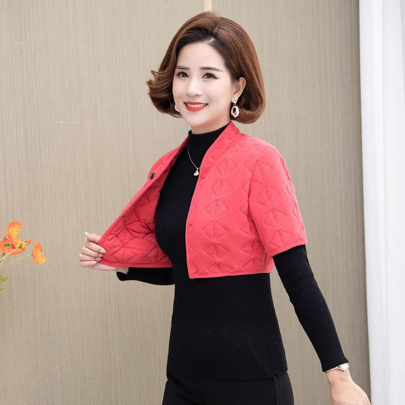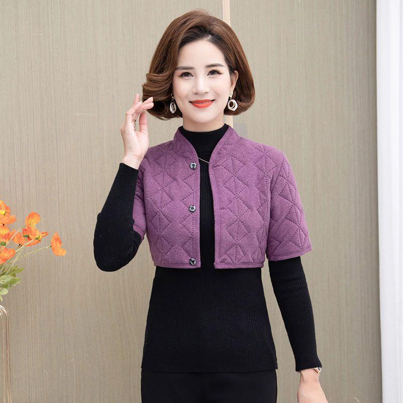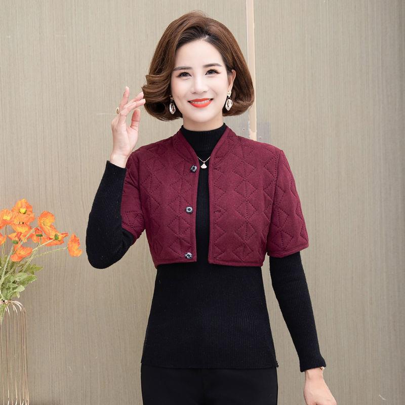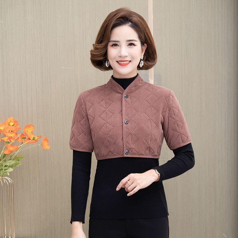 중년 및 노인을위한 긴 소매 벨벳 실크 면 어깨 조끼 느슨한 모든 매치 카디건 조끼 여성용 목 조끼 작은 조끼