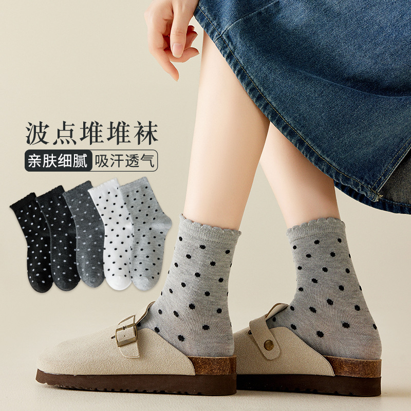 • 종아리 중간 양말 [땡땡이 무늬]