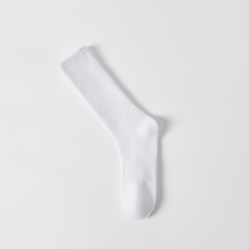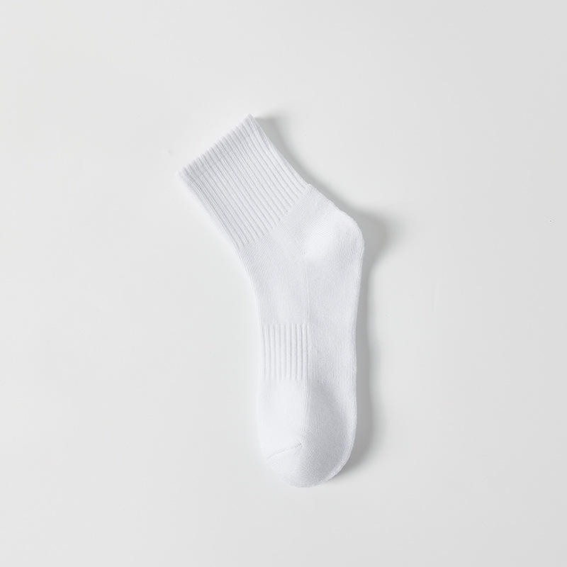 • 수건 바닥 스포츠 양말 중간 튜브 [화이트]