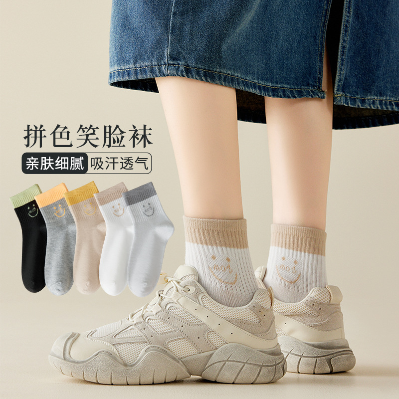 • 종아리 중간 양말 [스마일리 컬러 분리]