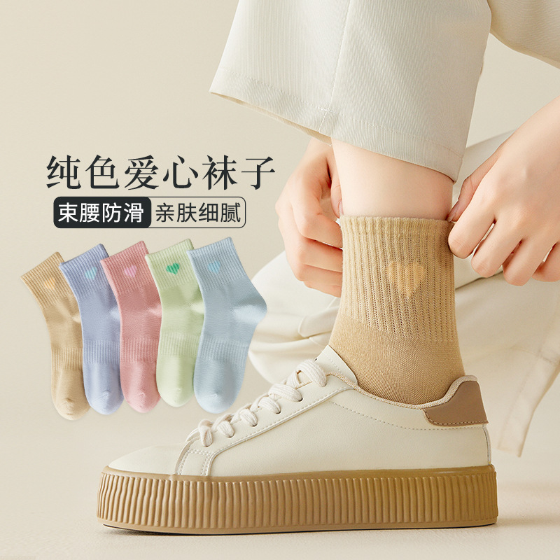 양말 여성용 가을 겨울 중간 길이 양말 여성용 일본식 단색 스태킹 양말 Instagram 스타일 트렌디 허리 스포츠 양말 흑백 스타킹스토어 가기