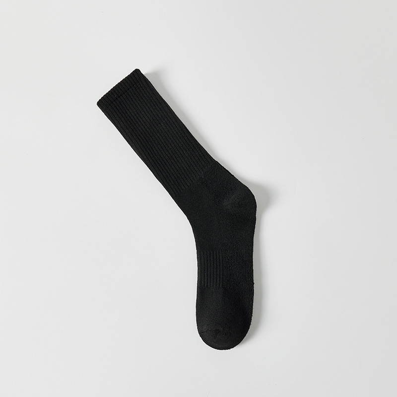 • 수건 바닥 스포츠 양말 중간 튜브 [블랙]