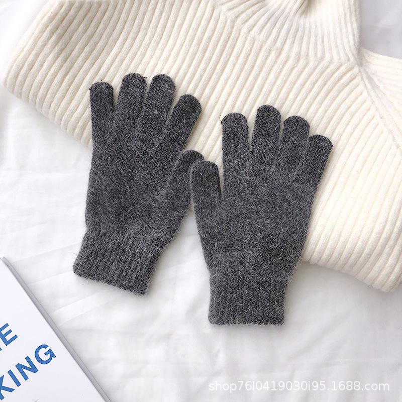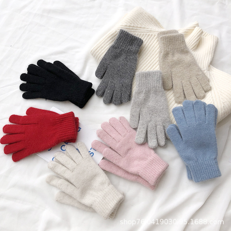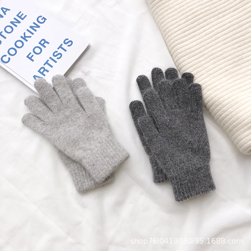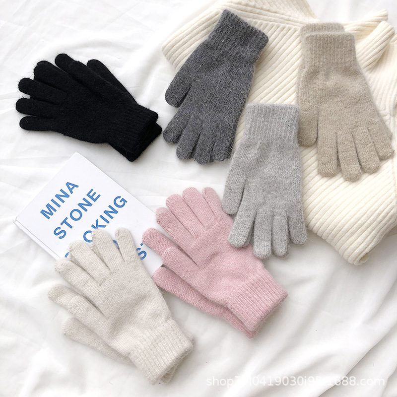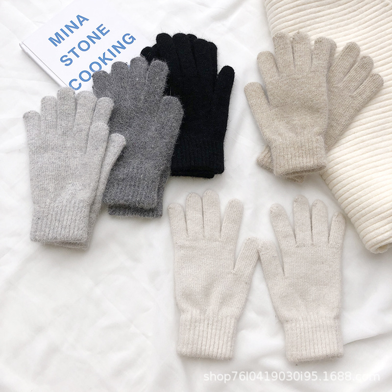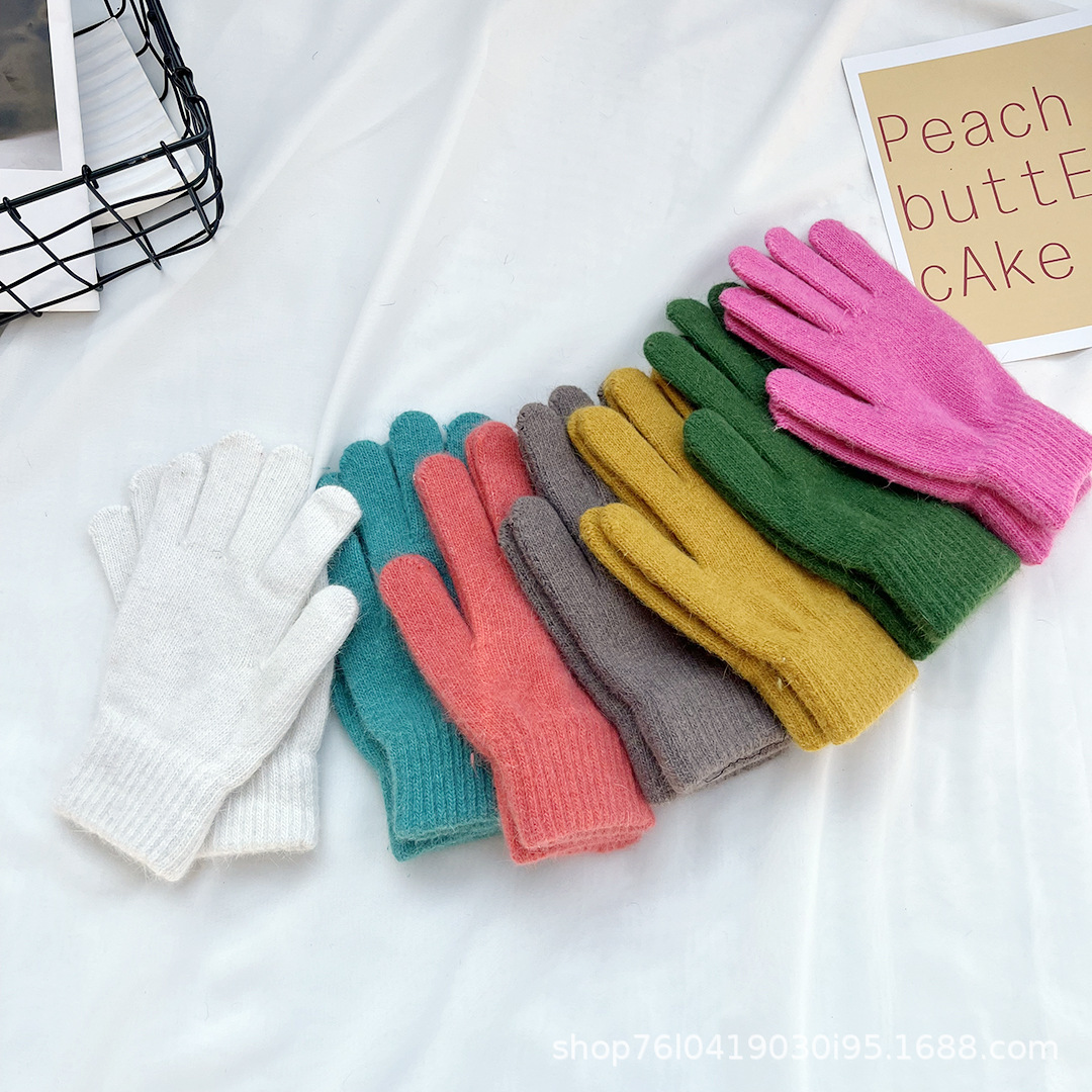 Ins 한국어 스타일 니트 토끼 모피 장갑 여성 겨울 따뜻한 간단한 학생 라이트 보드 다섯 손가락 방한 커플 장갑 유행스토어 가기