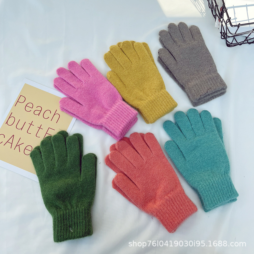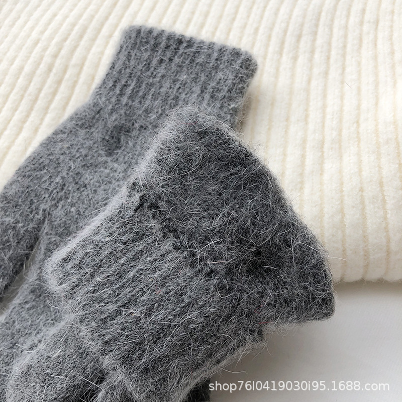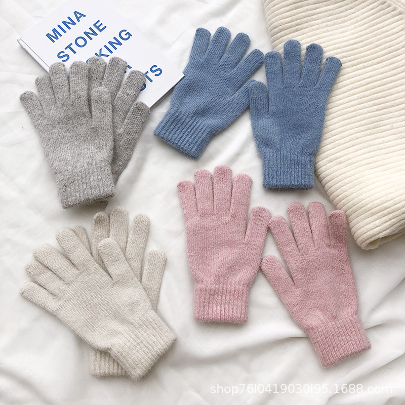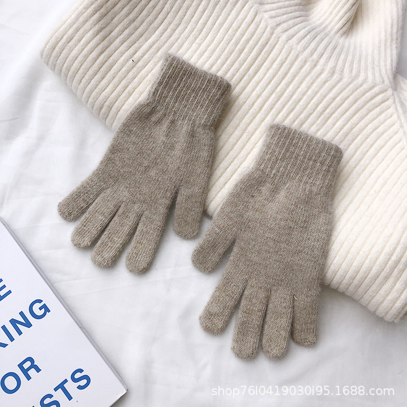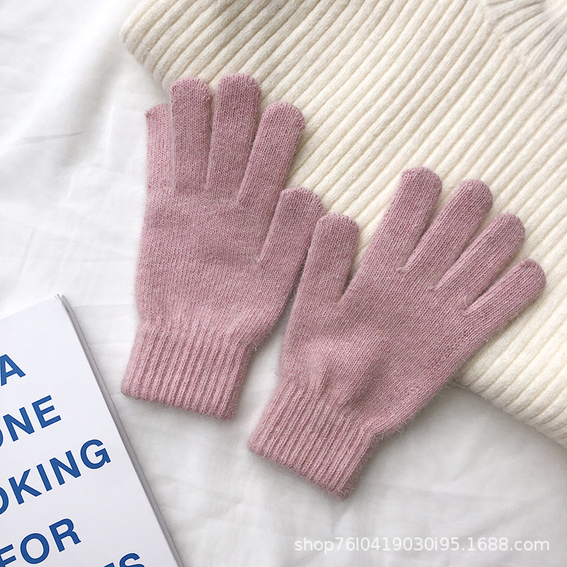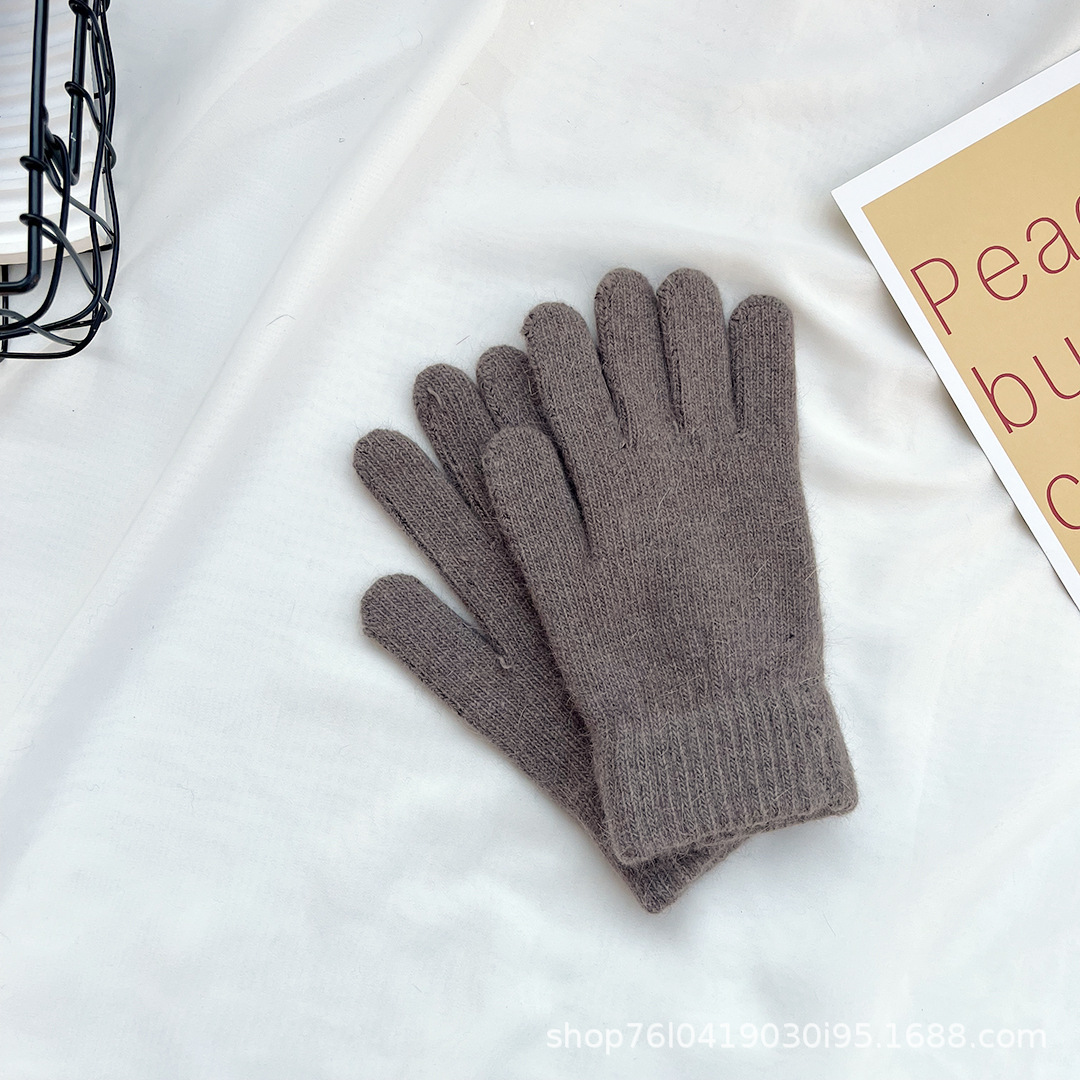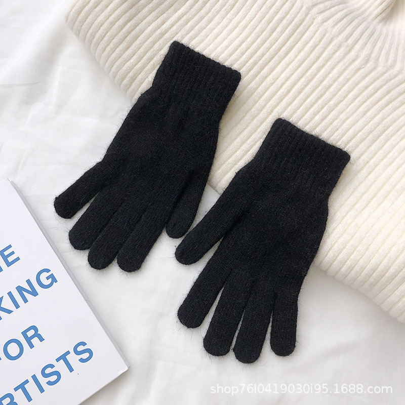 Ins 한국어 스타일 니트 토끼 모피 장갑 여성 겨울 따뜻한 간단한 학생 라이트 보드 다섯 손가락 방한 커플 장갑 유행스토어 가기