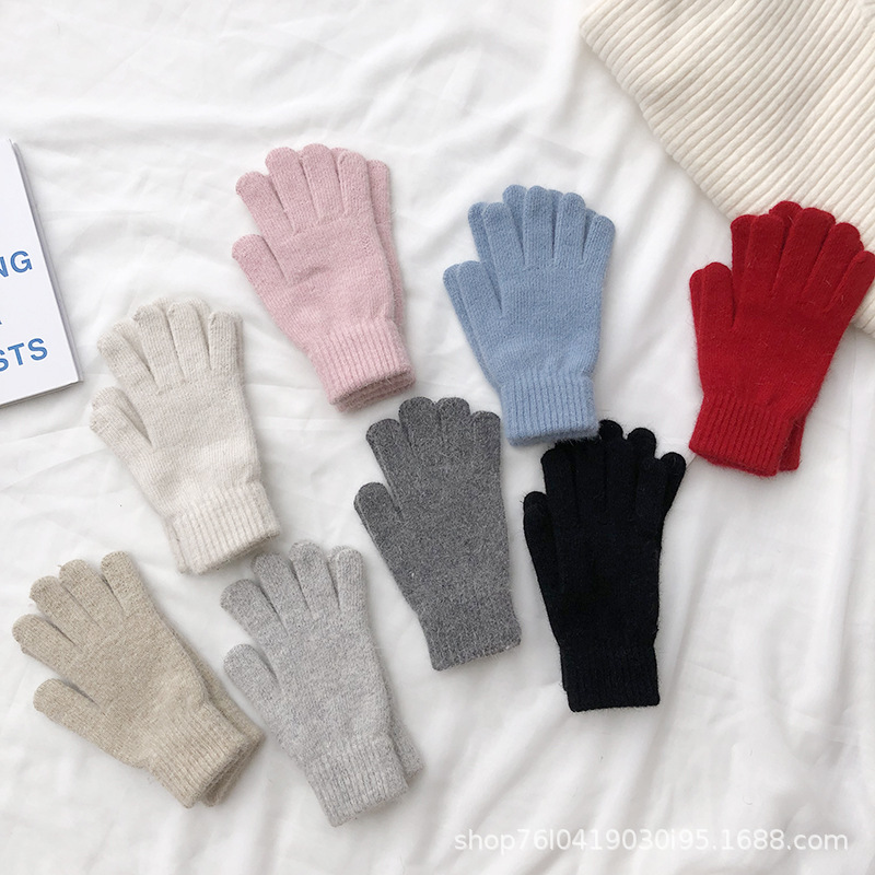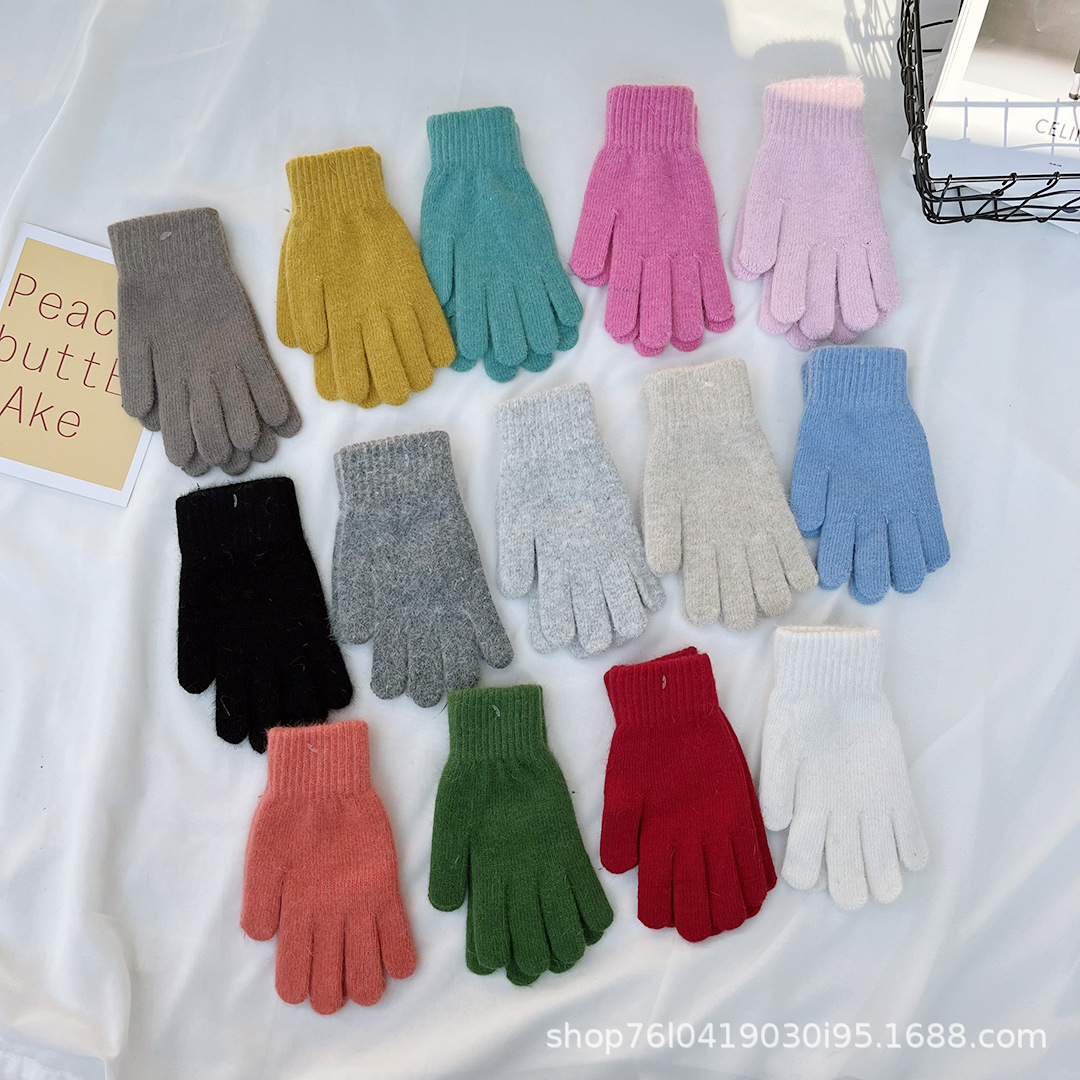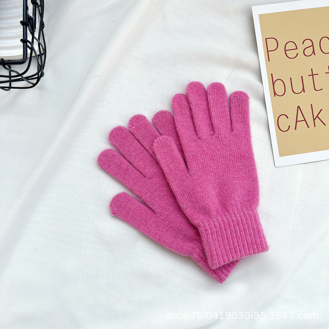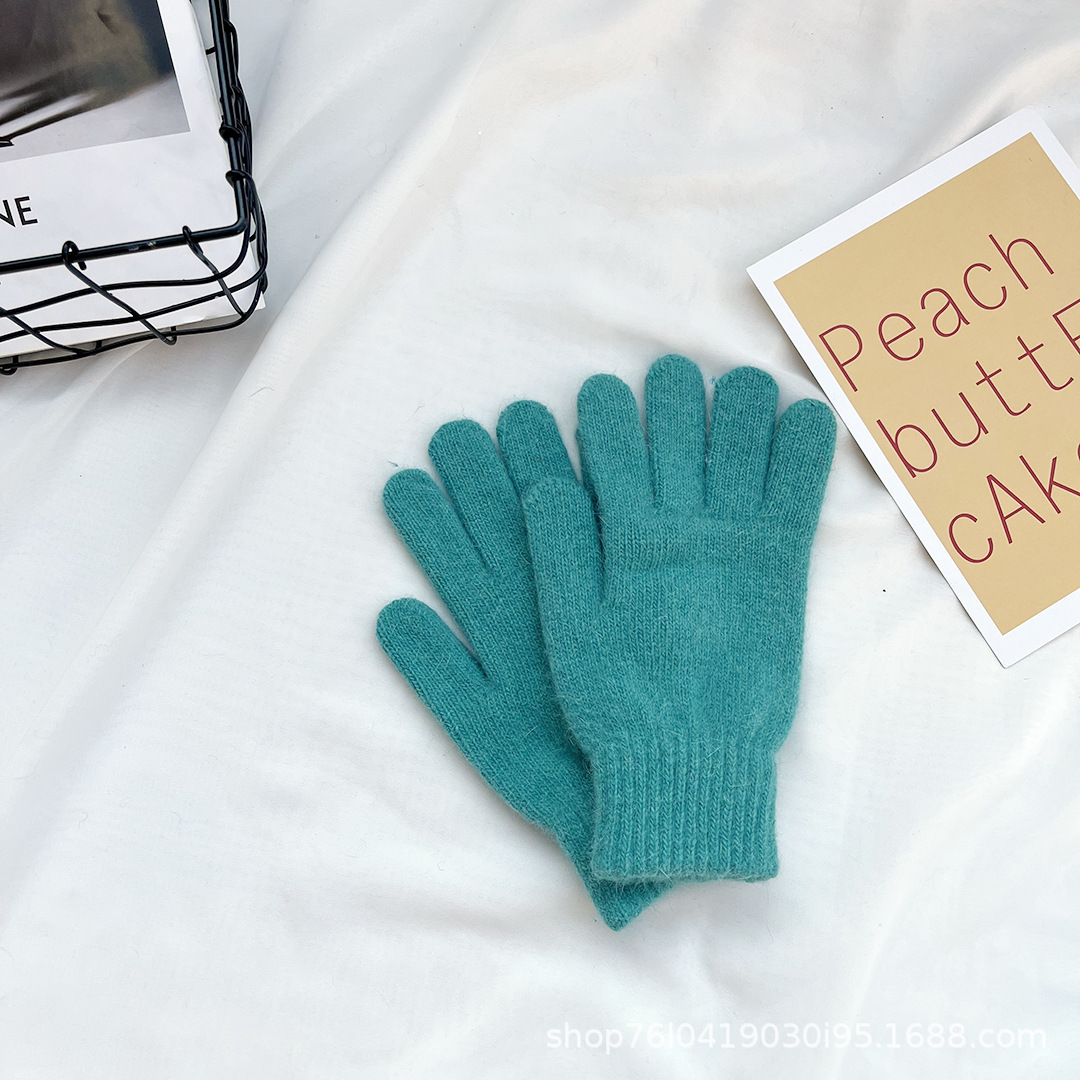 Ins 한국어 스타일 니트 토끼 모피 장갑 여성 겨울 따뜻한 간단한 학생 라이트 보드 다섯 손가락 방한 커플 장갑 유행스토어 가기