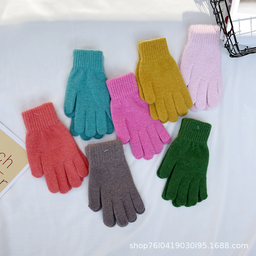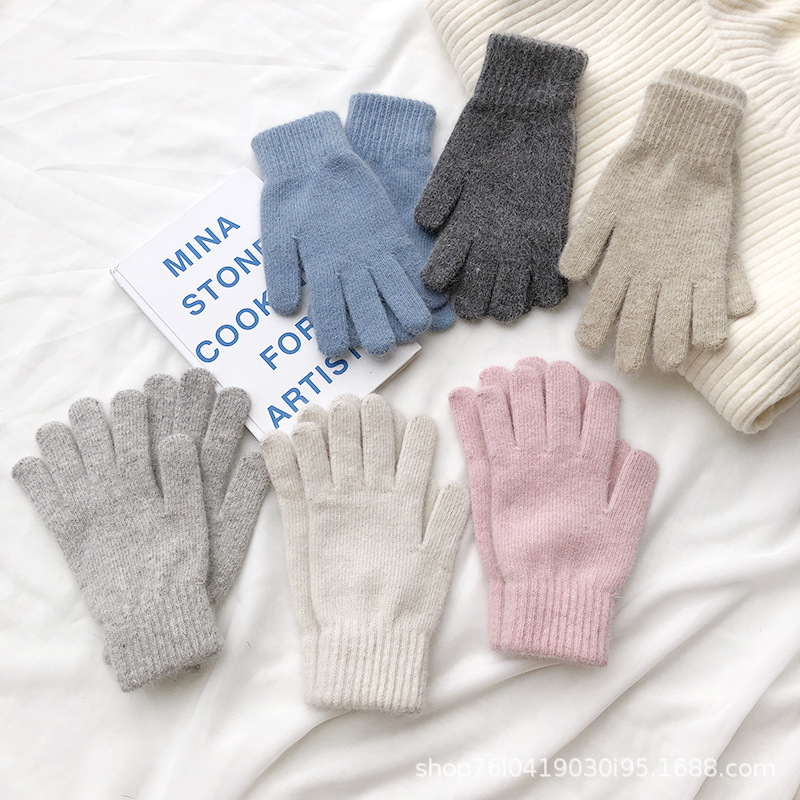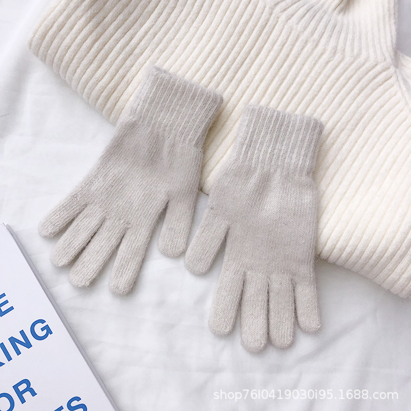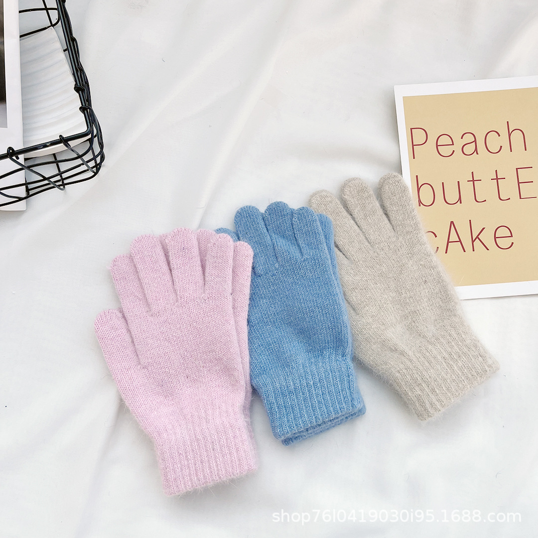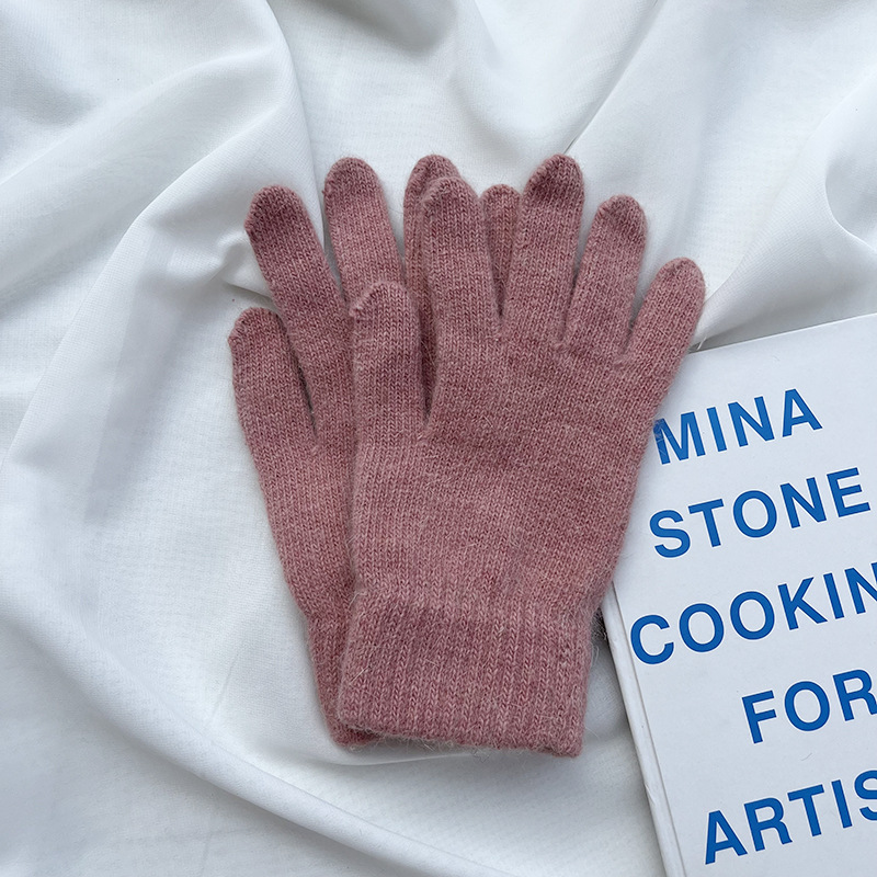 Ins 한국어 스타일 니트 토끼 모피 장갑 여성 겨울 따뜻한 간단한 학생 라이트 보드 다섯 손가락 방한 커플 장갑 유행