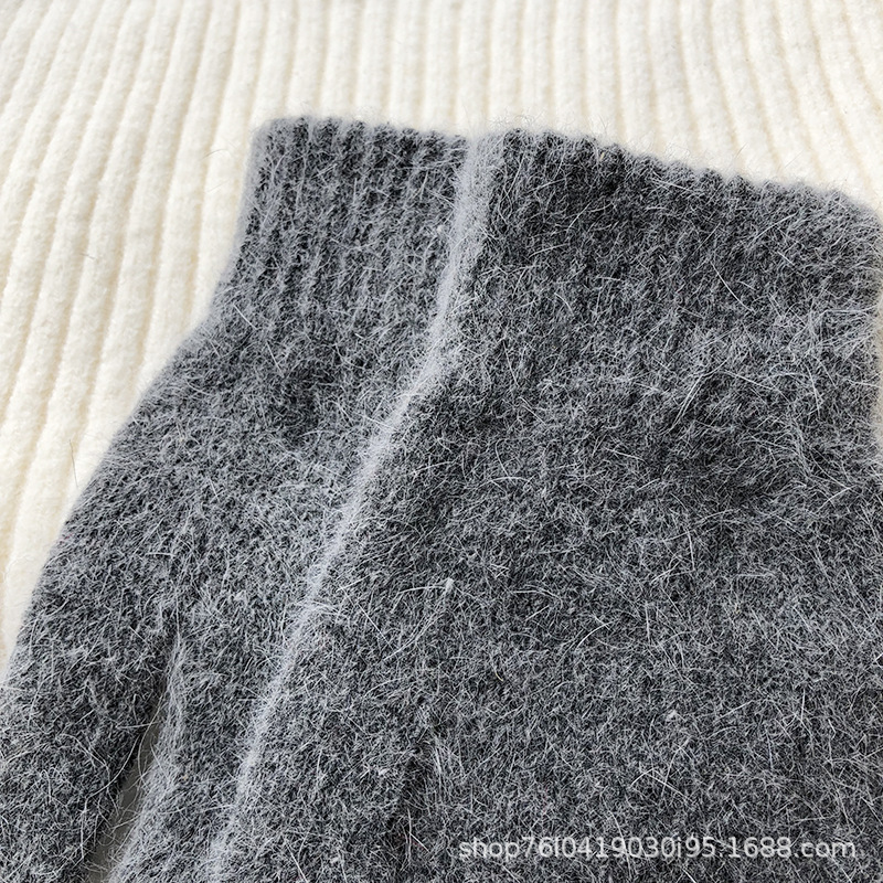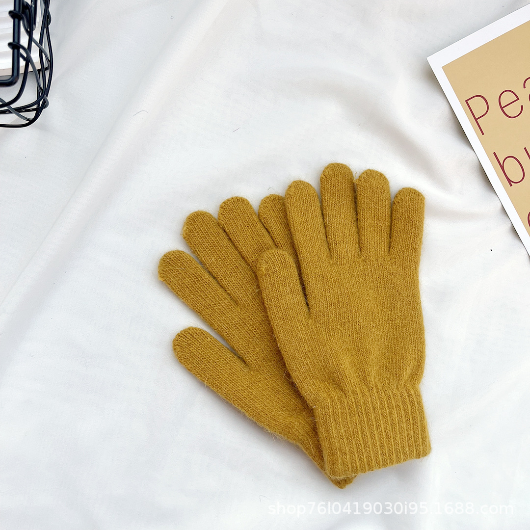 单层兔毛混纺五指手套