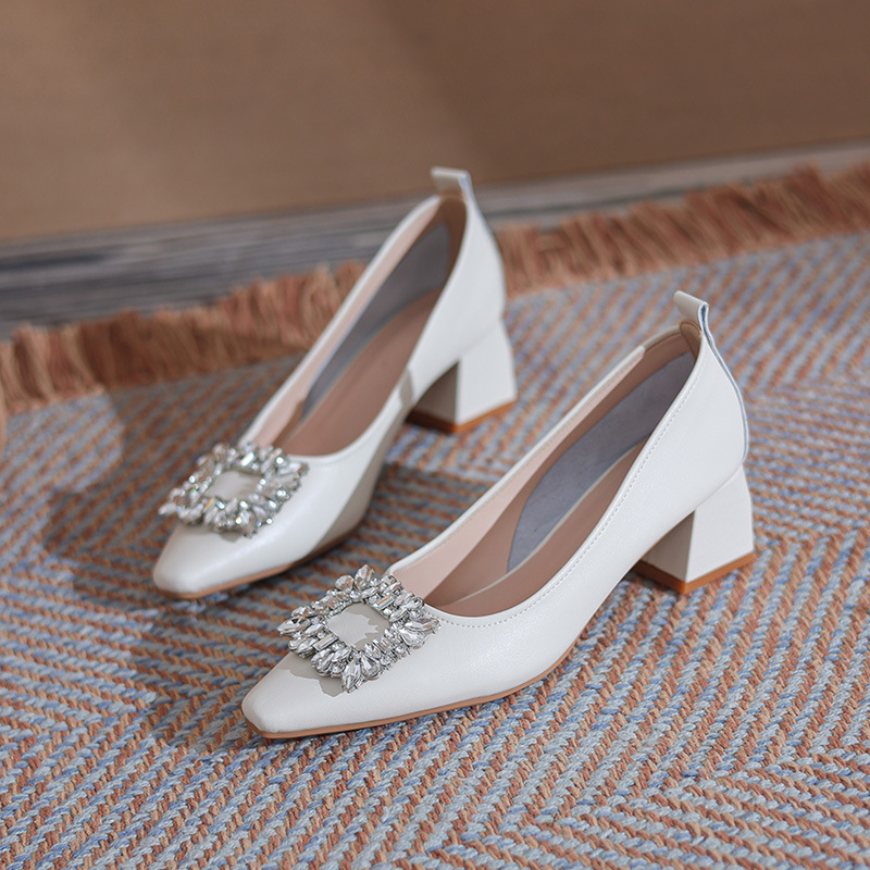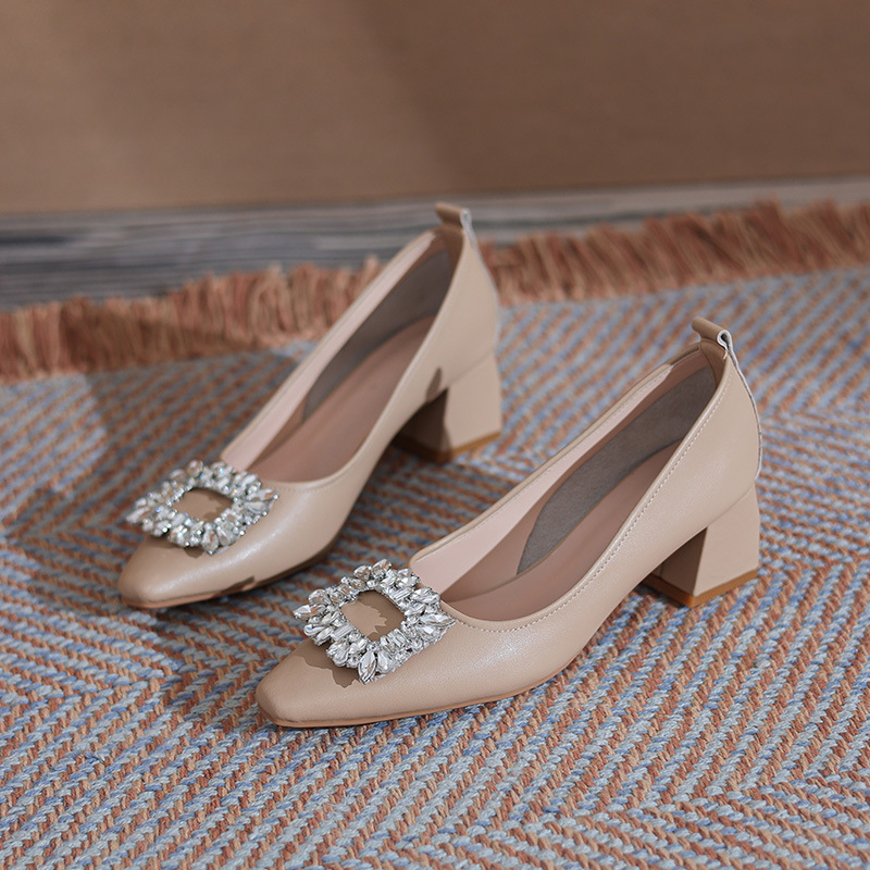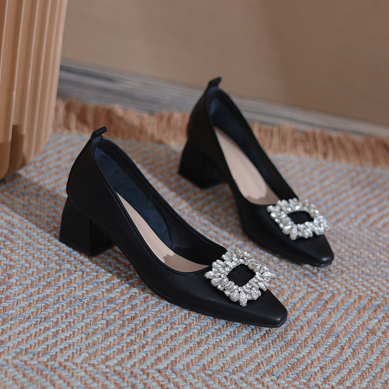 캐주얼 신발 2023 새로운 가을 프랑스 하이힐 스퀘어 토 청키 힐 신발 미들 힐 가죽 여성 신발스토어 가기