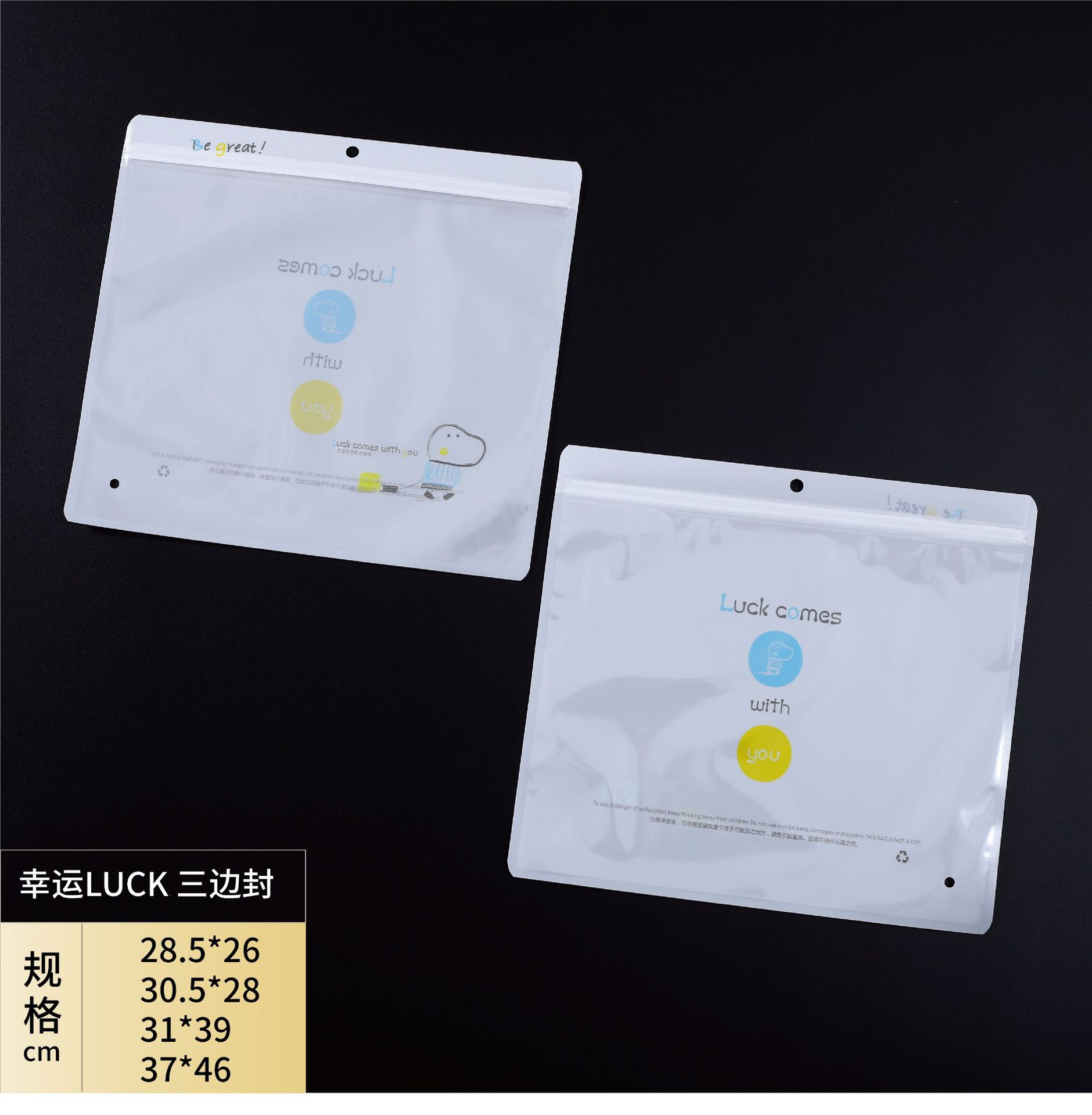 2、袋子均采用胶版印刷,袋子分正反2面,我们不能保证正反印刷面可以重合,这个是行业的通病,一定会有误差!