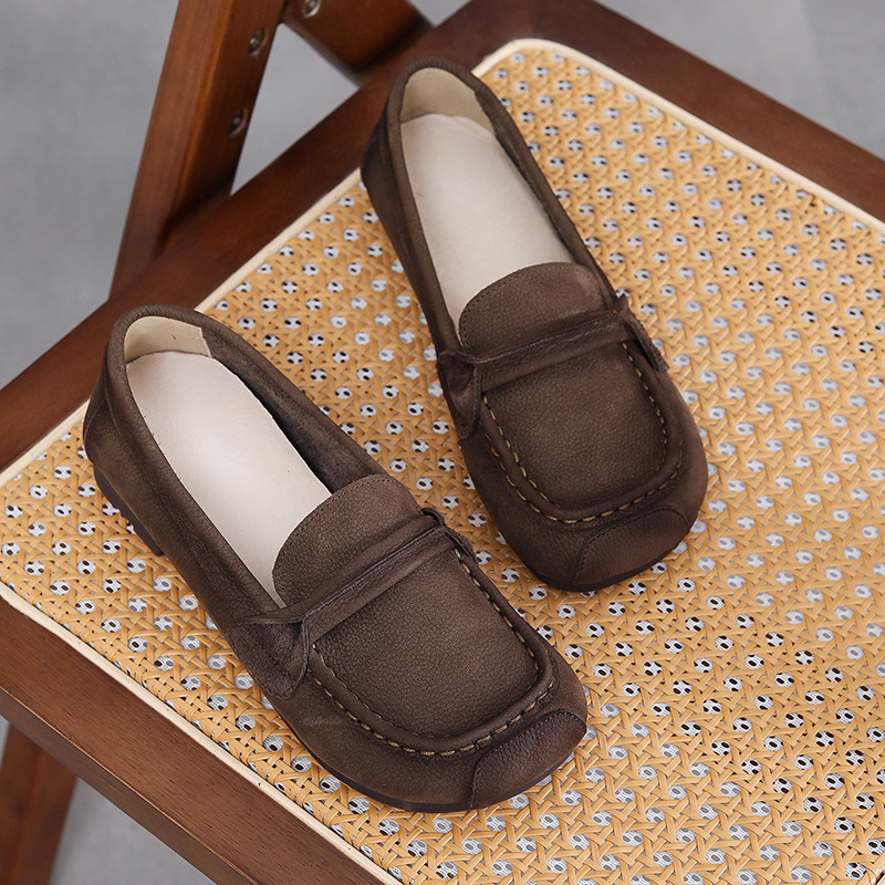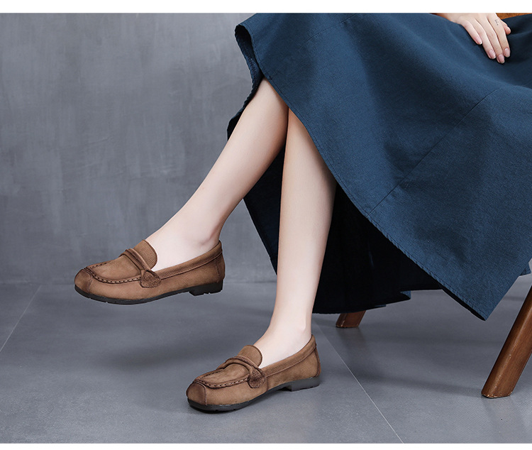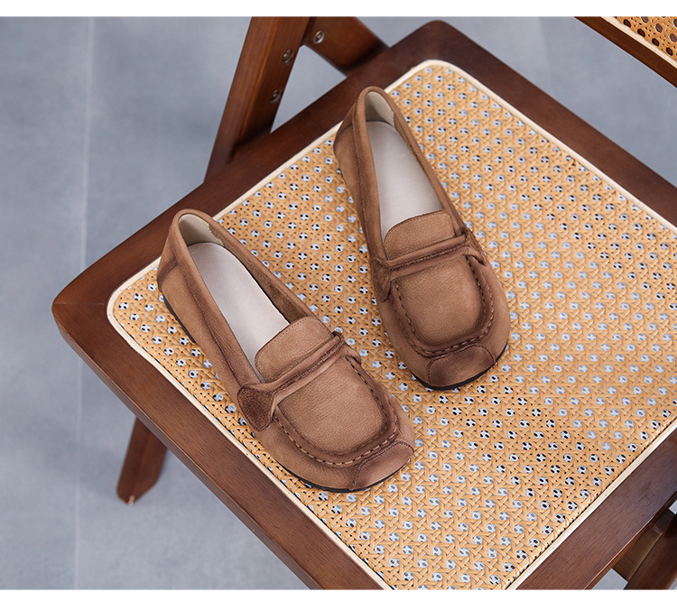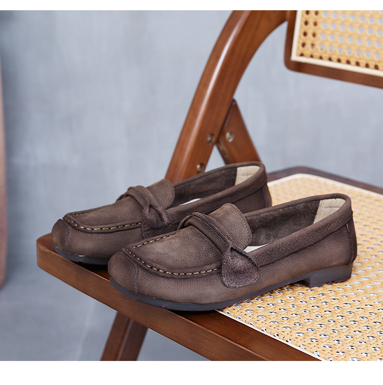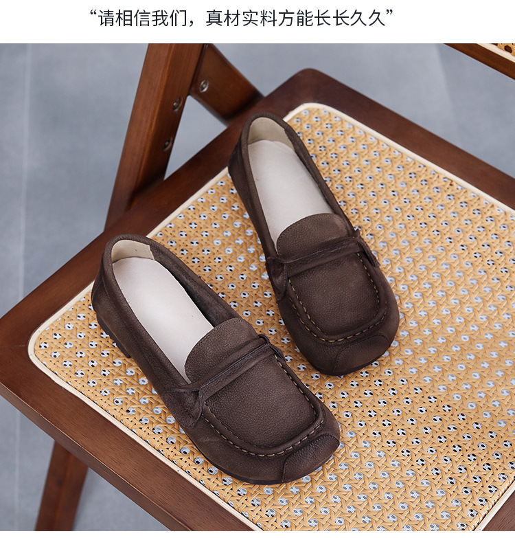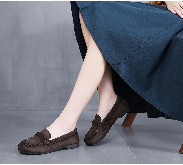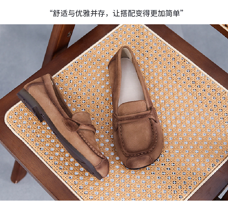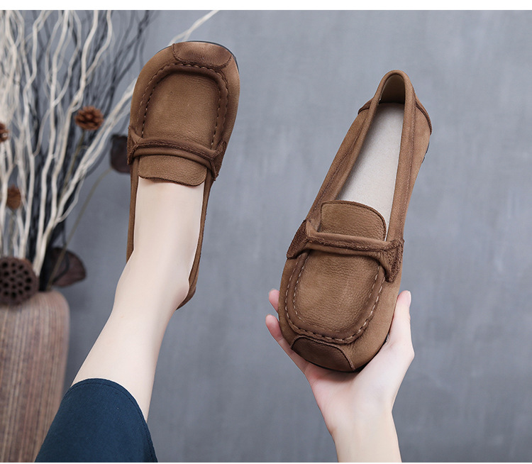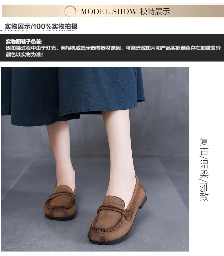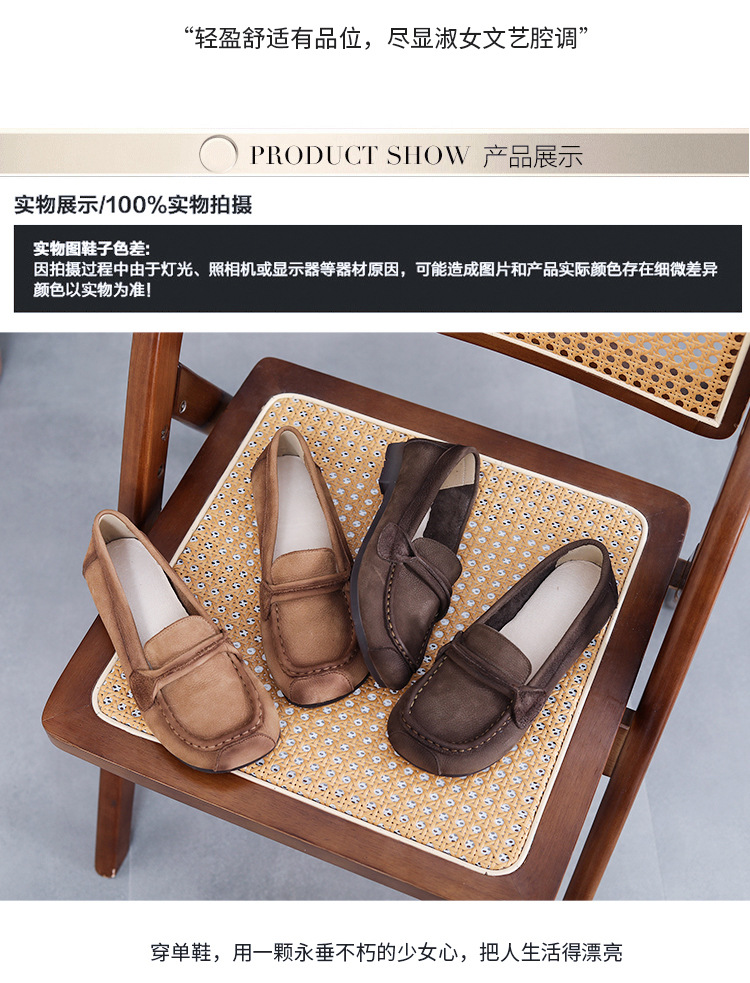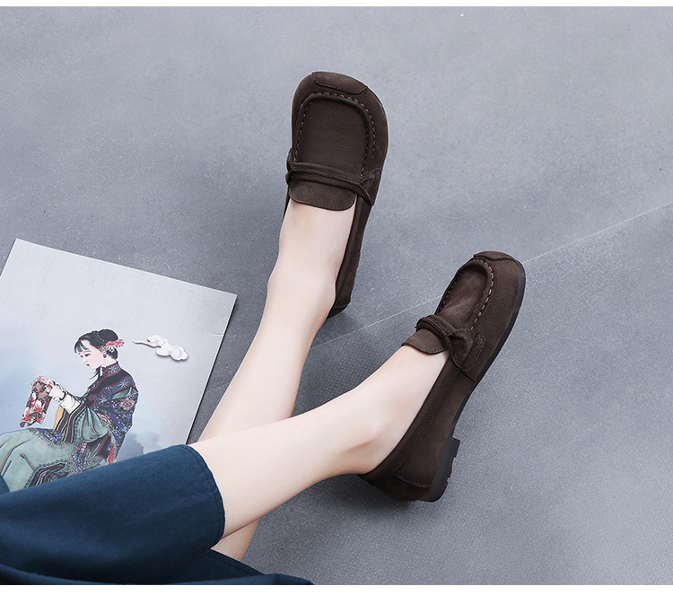 가을 새로운 스타일의 쇠고기 힘줄 부드러운 바닥 정품 가죽 여성 완두콩 신발 플랫 힐 단층 신발 편안한 임산부 신발 1256
