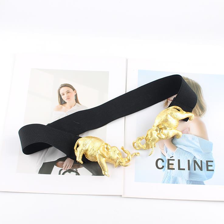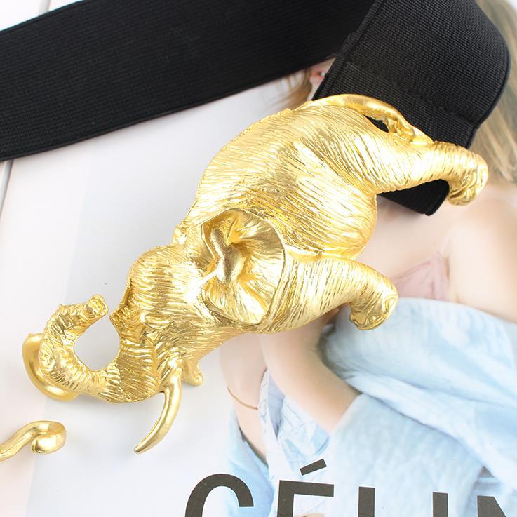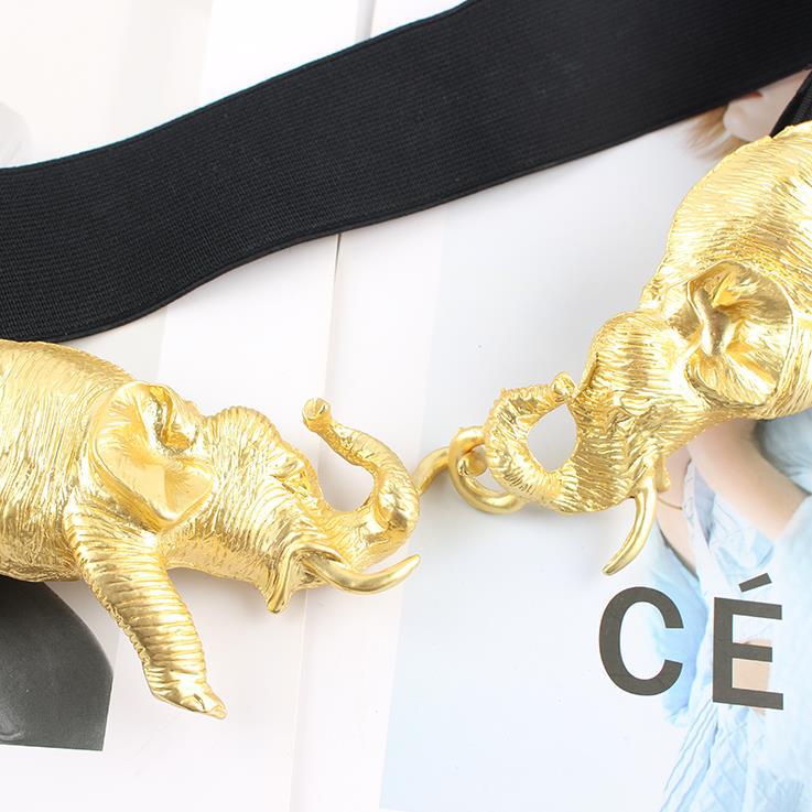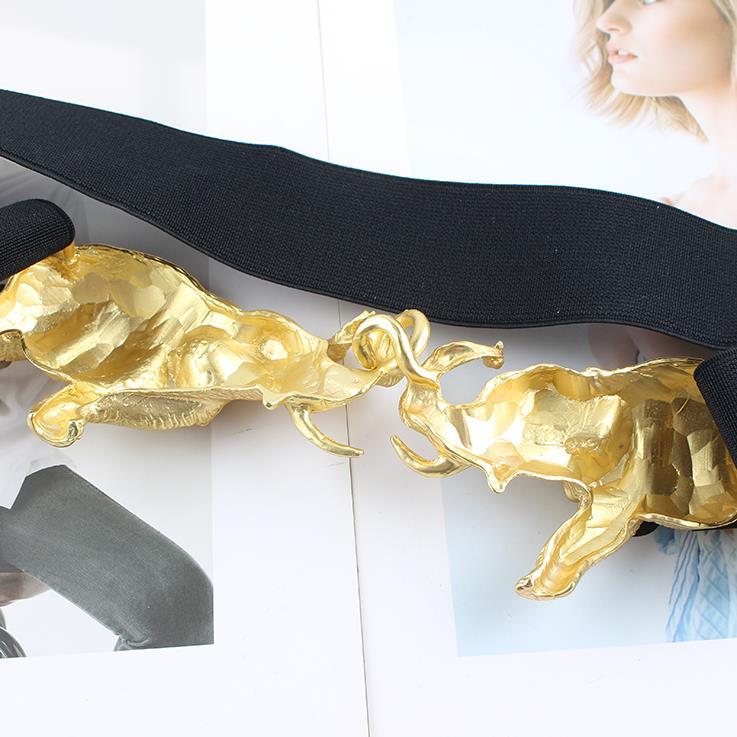 독창적 인 디자인 무거운 골동품 감각 너무 절묘한 금속 금 조각 코끼리 탄성 벨트 허리 씰 여성용