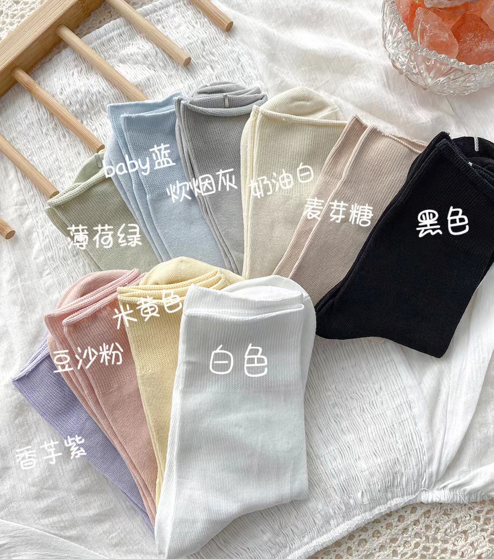 캔디 컬러 화이트 양말 여성의 긴 스테이플 코튼, 트렌디 한 봄과 가을 여름 긴 느슨한 입 감금 양말 일본식 학생 중간 종아리 길이 양말