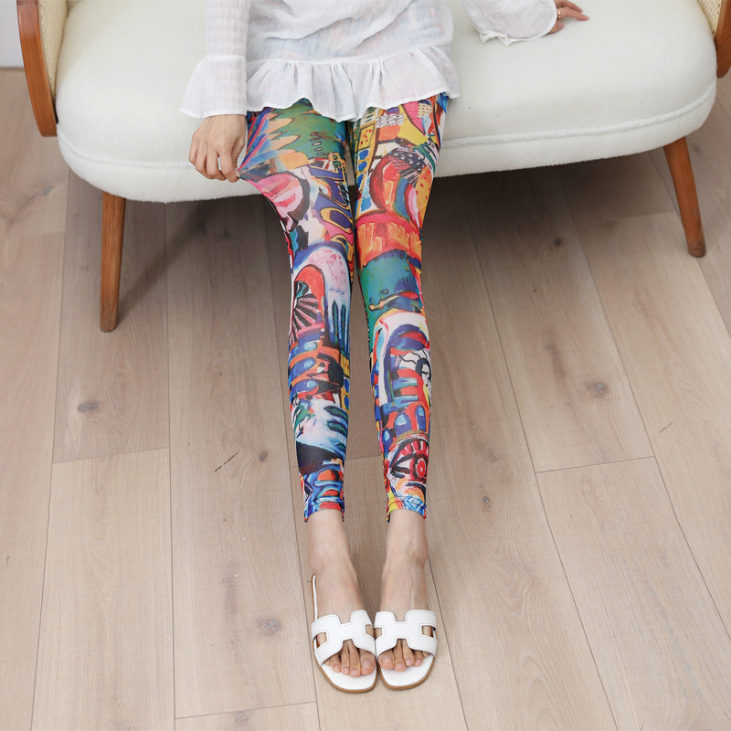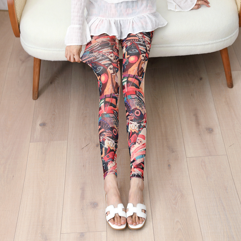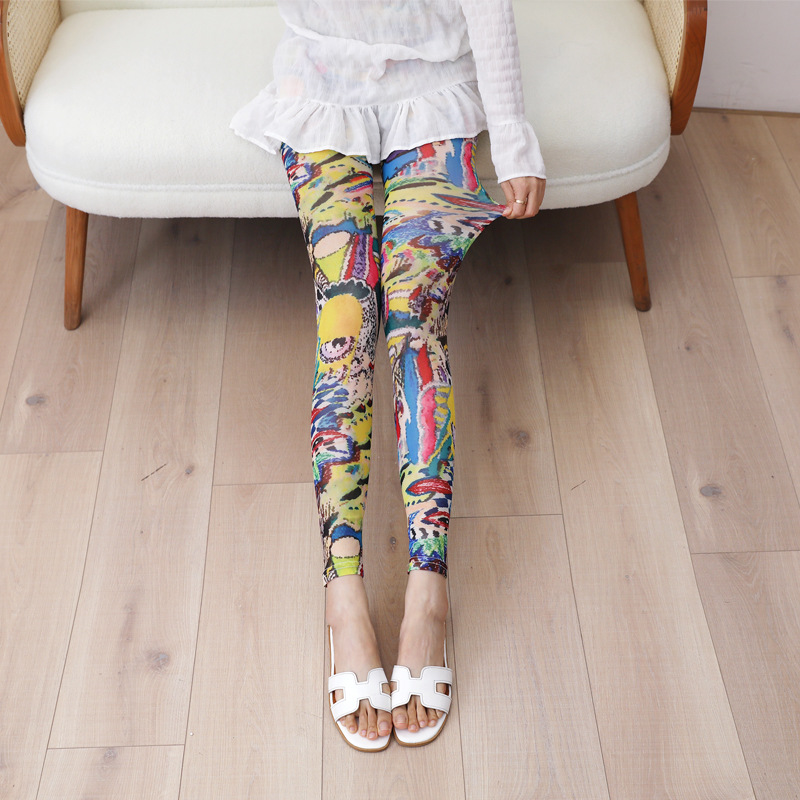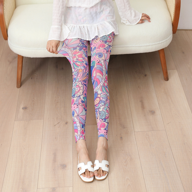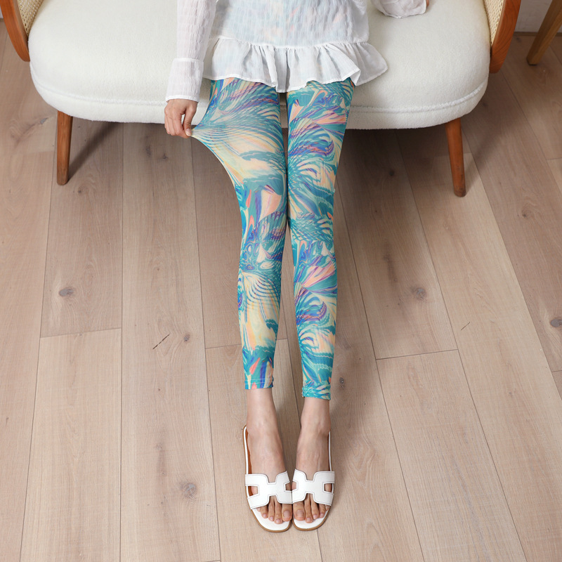 여름 얇은 쿨 메쉬 바지 섹시한 고기 레깅스 여성용 초박형 인쇄 패션 여성용 실크 슬라이드 바지스토어 가기