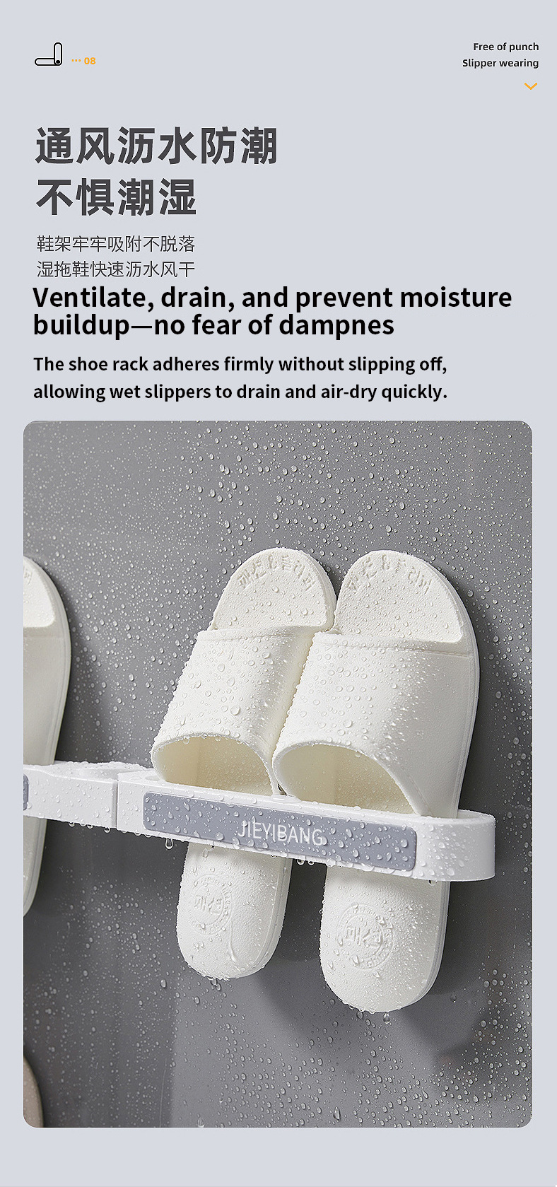 욕실 슬리퍼 랙, 펀칭 없음, 벽걸이 형 슬리퍼 배수 랙, 욕실 신발 랙, 여성용 보관 유물 보관함