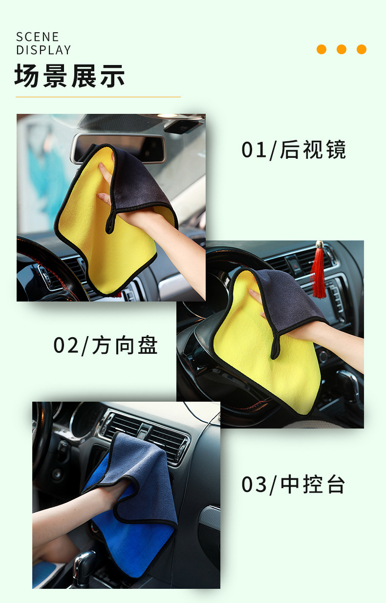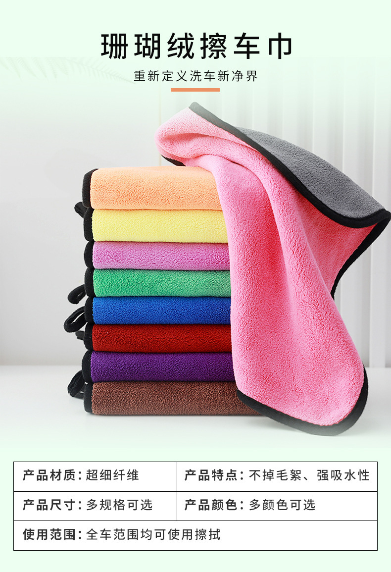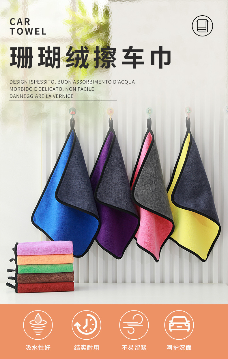 다기능 청소 타월, 물 흡수력이 뛰어나고 물자국이 남지 않는 산호벨벳 자동차 닦는 타월, 청소용 두꺼운 대형 세차 타월