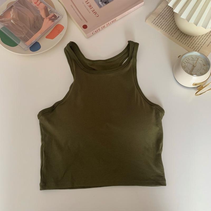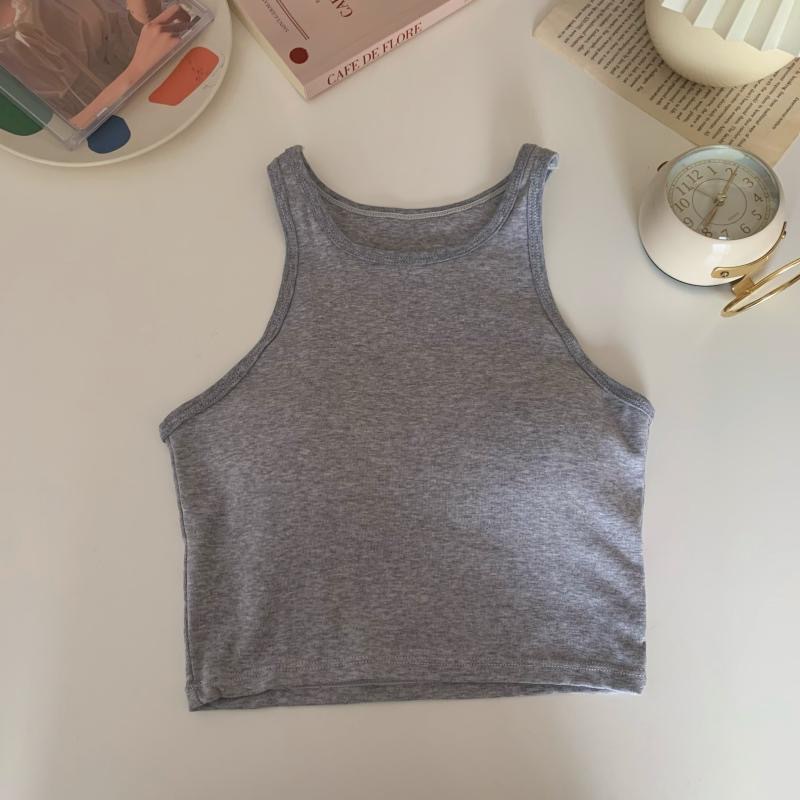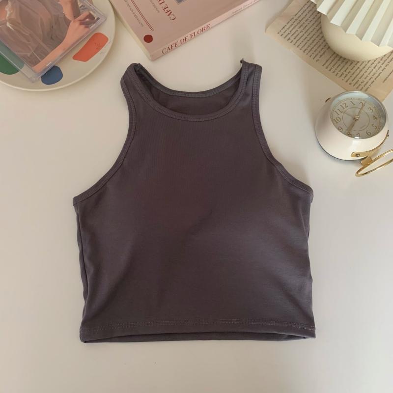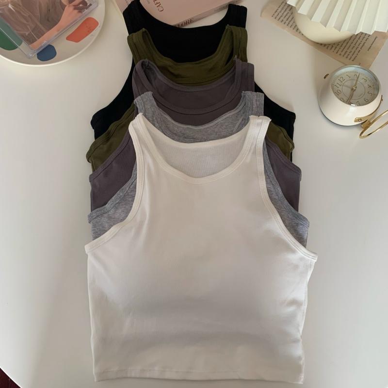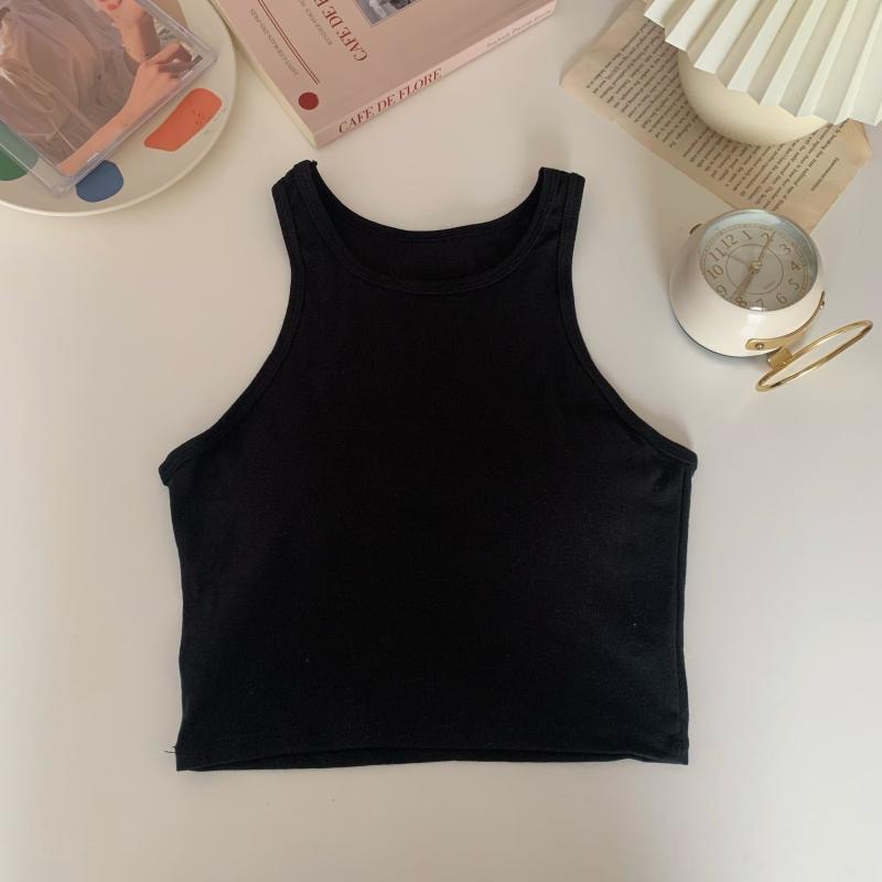2022 솔리드 컬러 올매치 스포티 스타일 디자인 크루넥 민소매 조끼 여성용 슬림핏 슬리밍 탑 (가슴 패드 포함)스토어 가기