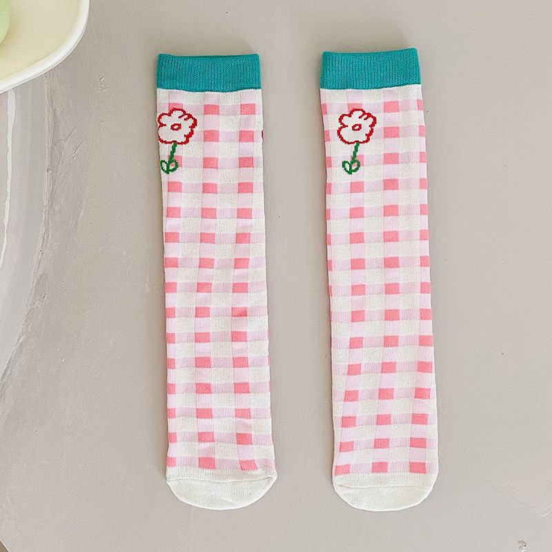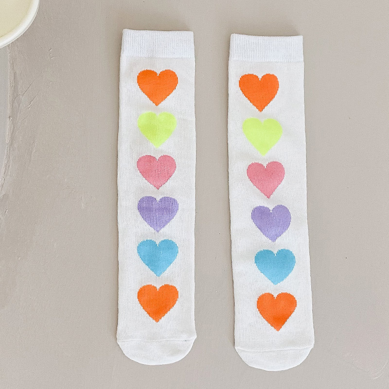 어린이 양말 봄과 가을 얇은면 소녀 서양식 중간 종아리 길이 양말 하트 레오파드 무늬 캔디 컬러로 트렌디 한 종아리 양말스토어 가기