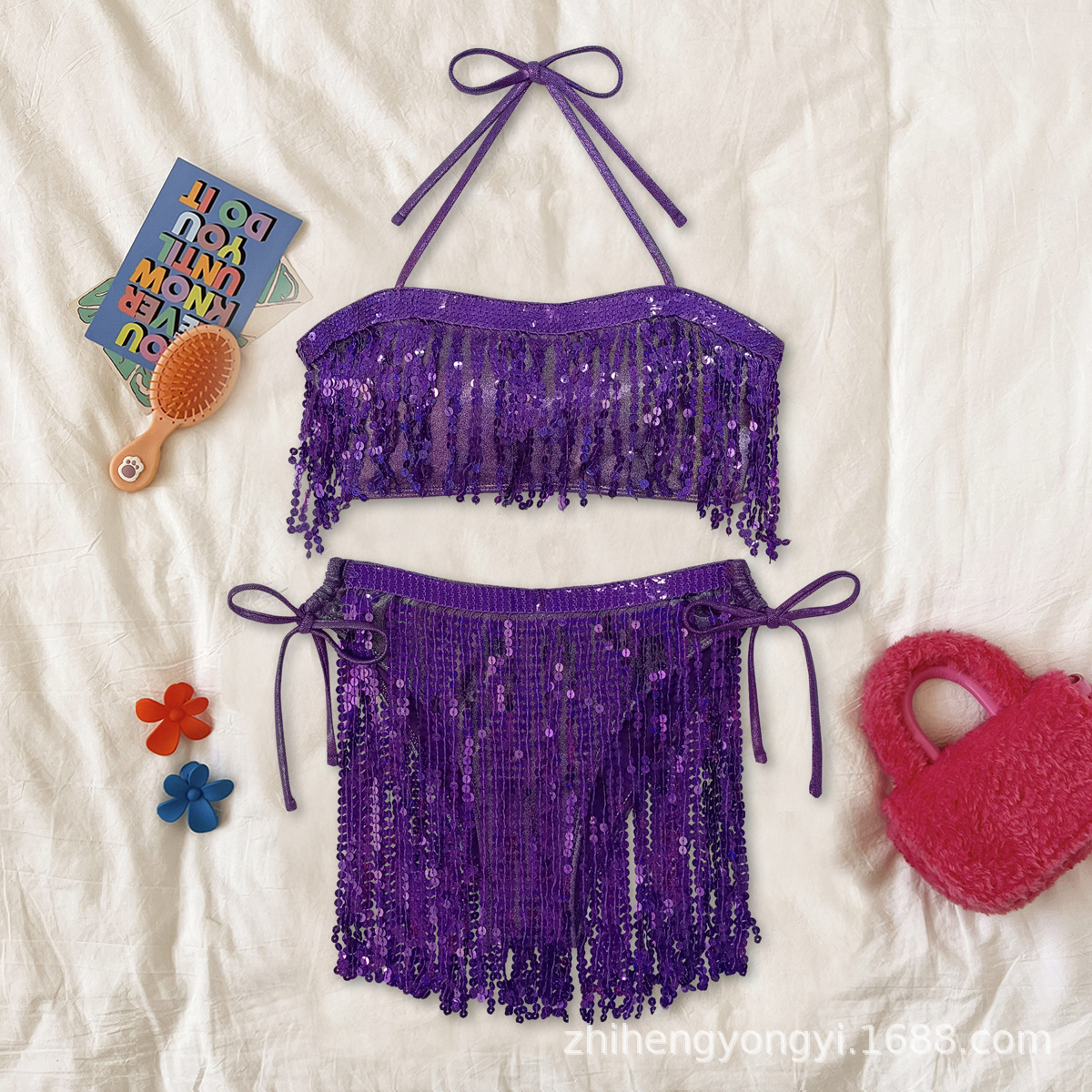Qiheng 22012N 스팽글 튜브 탑 수영복 여성 유럽과 미국의 비키니 도매 아마존 섹시한 비키니 수영복스토어 가기
