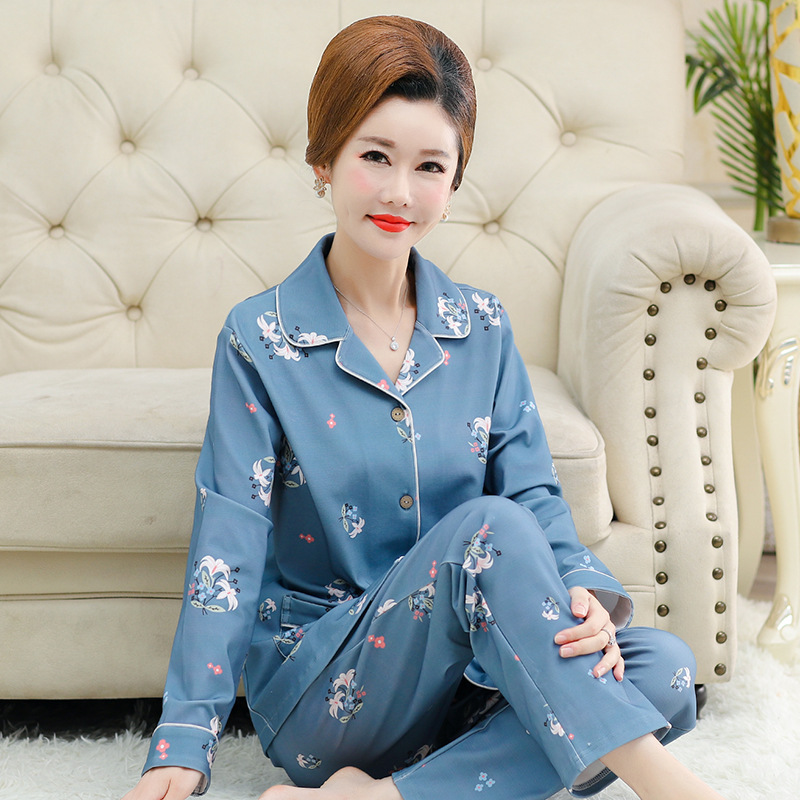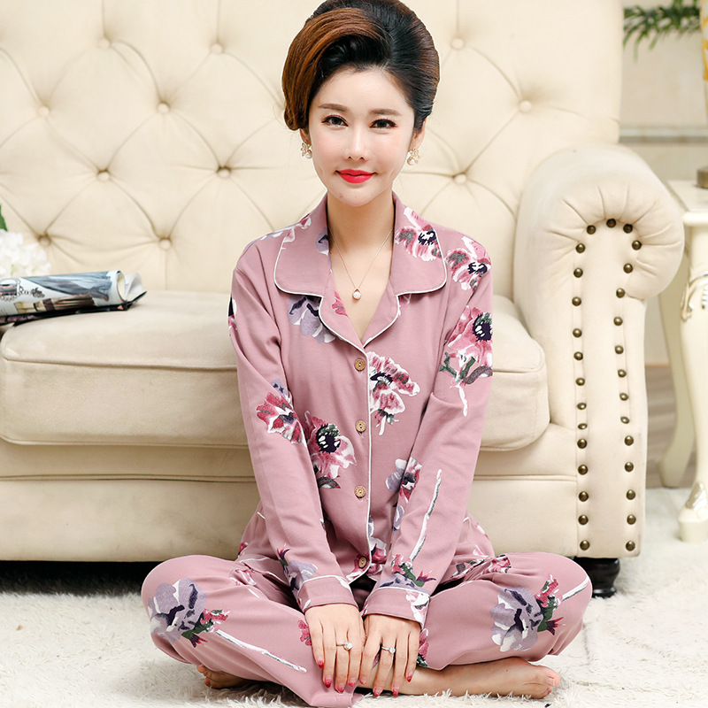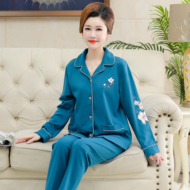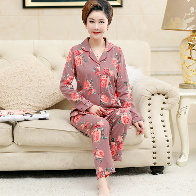 가을과 겨울 잠옷 입고 여성 긴팔 면화 카디건 느슨한 플러스 사이즈 중년 및 노인 어머니를위한 세트 가정 옷