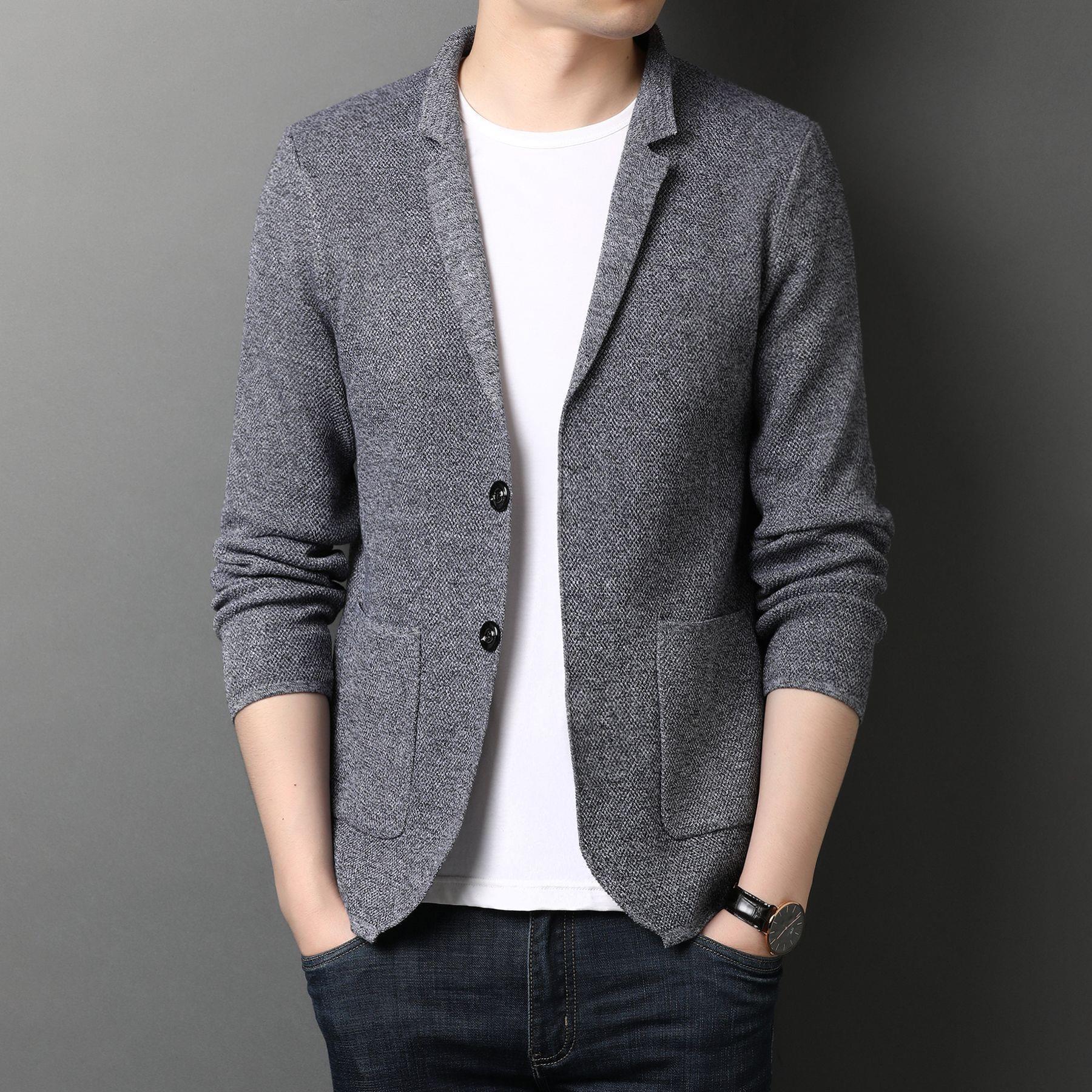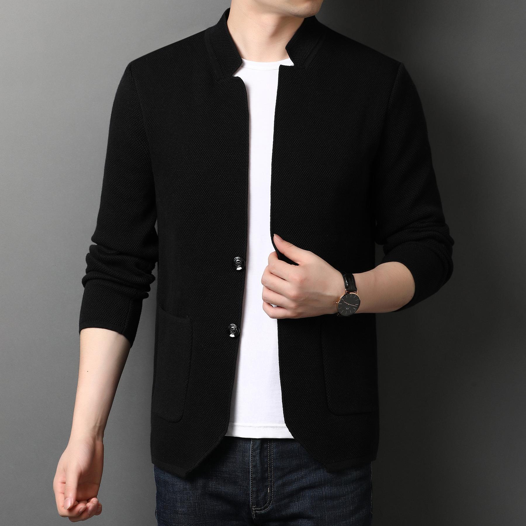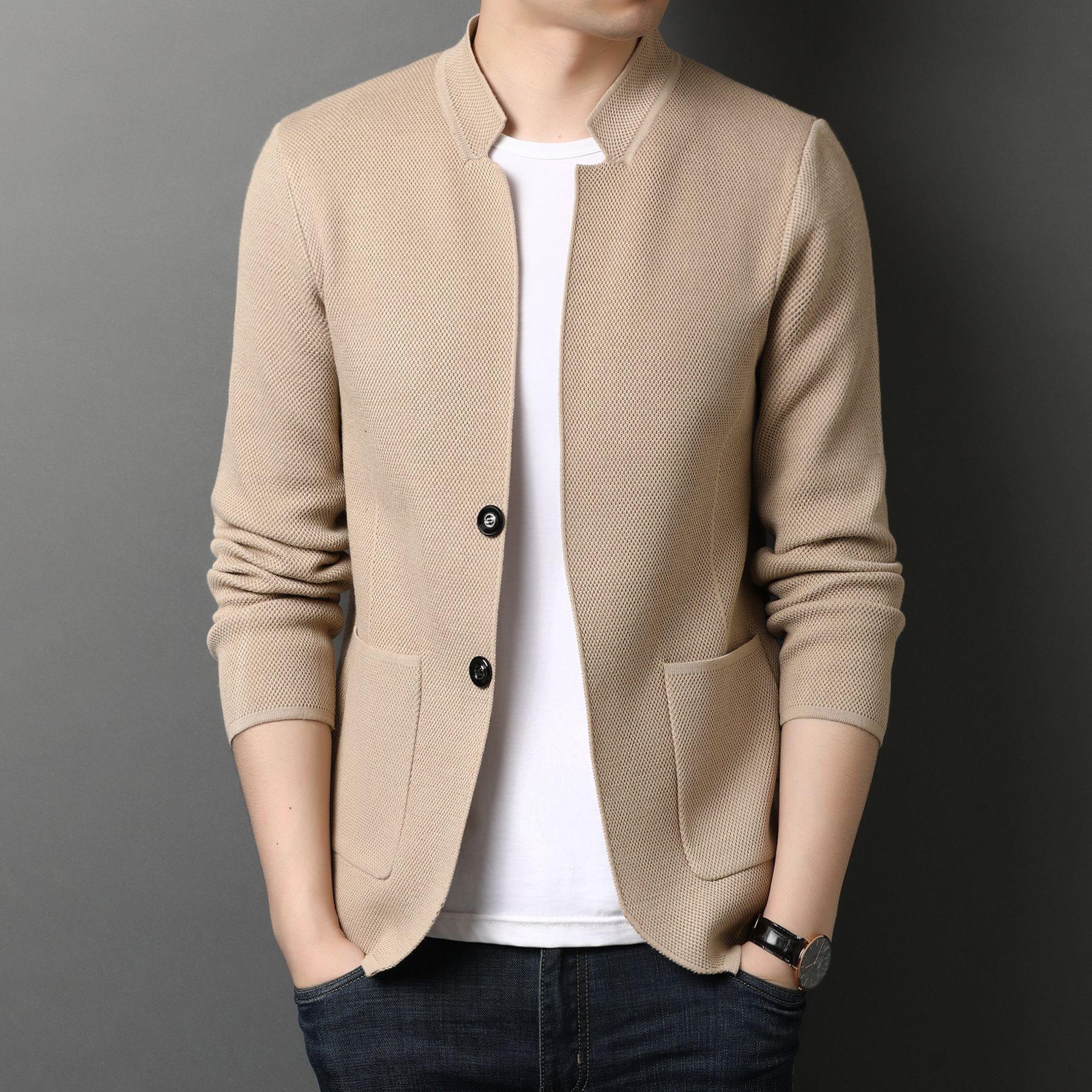 2024 남성용 한국 스타일 신상 정장 칼라 단색 스웨터 가디건 패션 캐주얼 청년용 크로스보더 니트 재킷스토어 가기