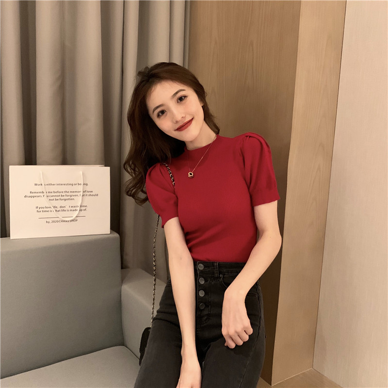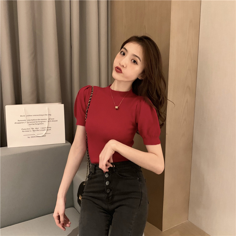 2025 초가을 여성을위한 새로운 스타일 하프 터틀넥 반팔 바닥 셔츠 흰색 슬림 피트 내부 세련된 니트 스웨터 탑스토어 가기