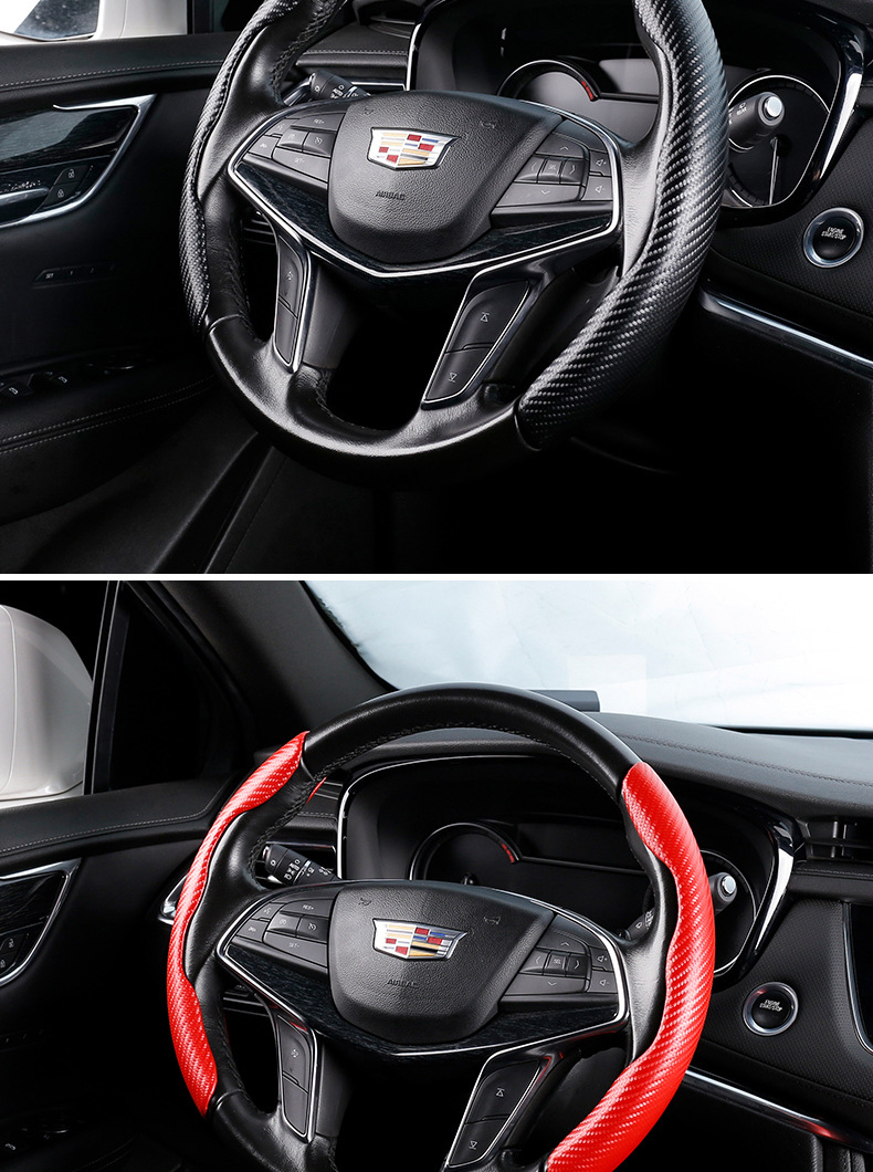 자동차 핸들 커버 탄소 섬유 그레인 가죽 수정 카세트 핸들 커버 카드 커버 사계절 GM 핸들 커버스토어 가기