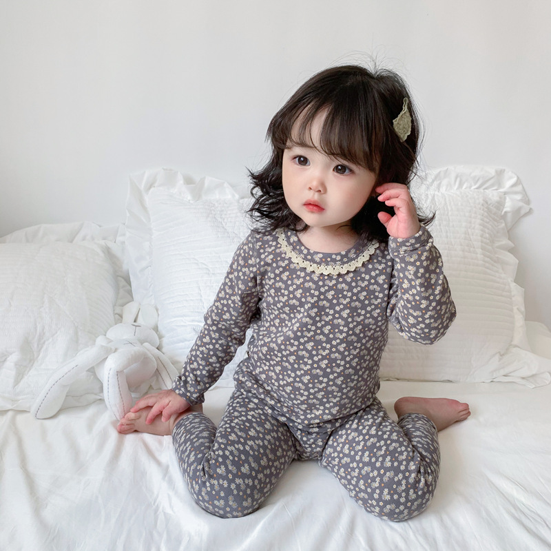 여자의 보물 뼈없는 가을 옷 세트 카테고리 새로운 가을과 겨울 두꺼운 순면 가을 바지 아기의 작은 꽃 울 풀 랙