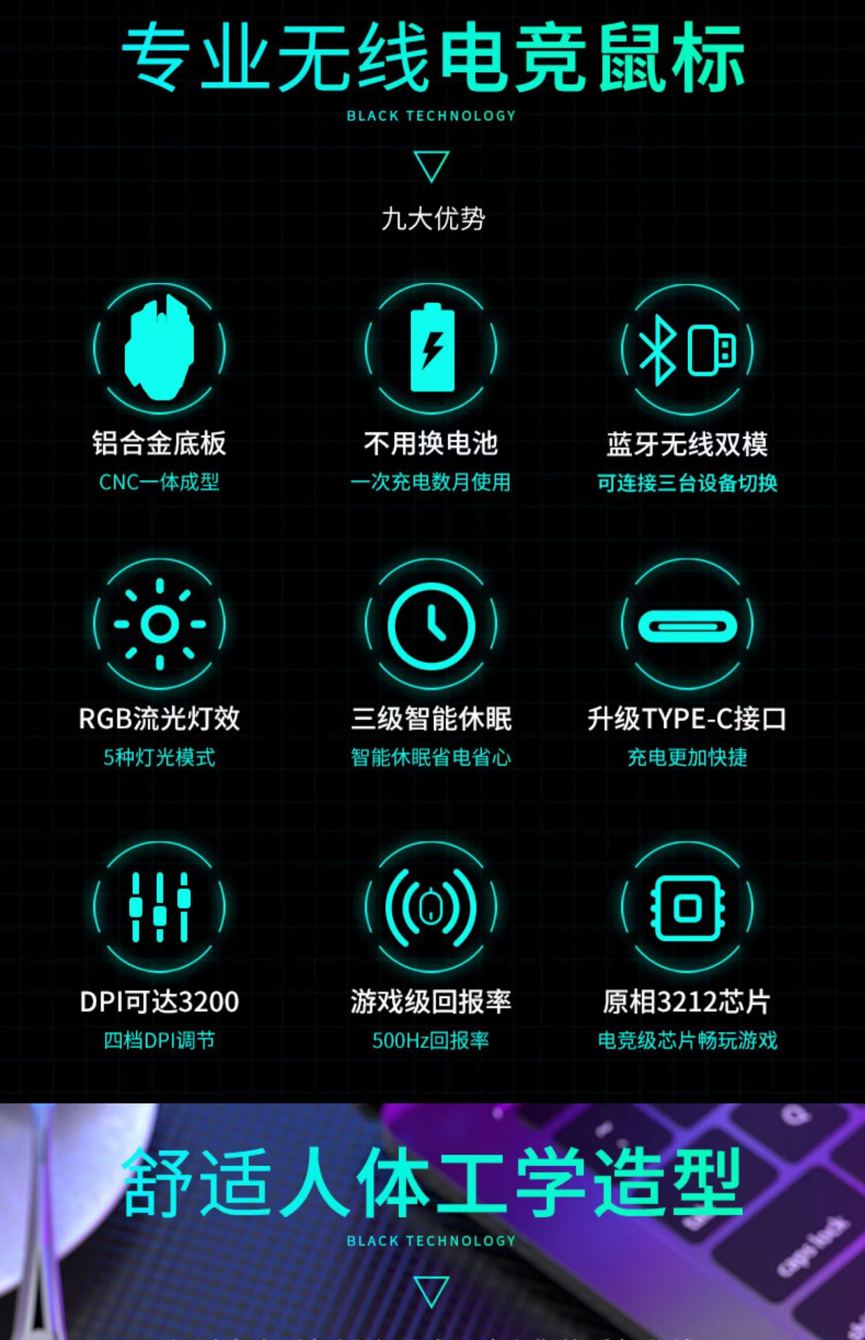 국경 간 스팟 M7 컬러 무선 충전 블루투스 듀얼 모드 게임용 마우스 e-스포츠 오피스 비즈니스 노트북 마우스스토어 가기