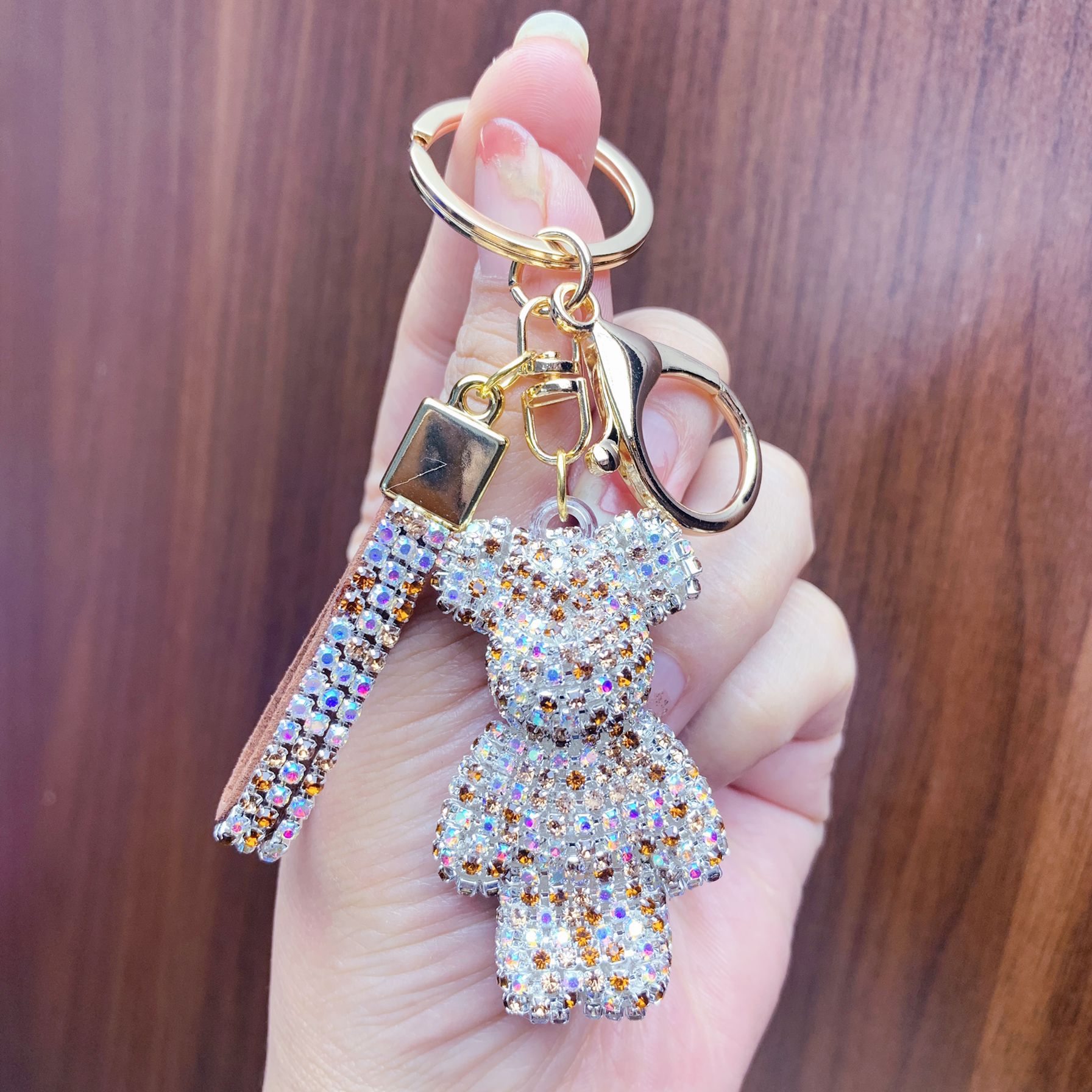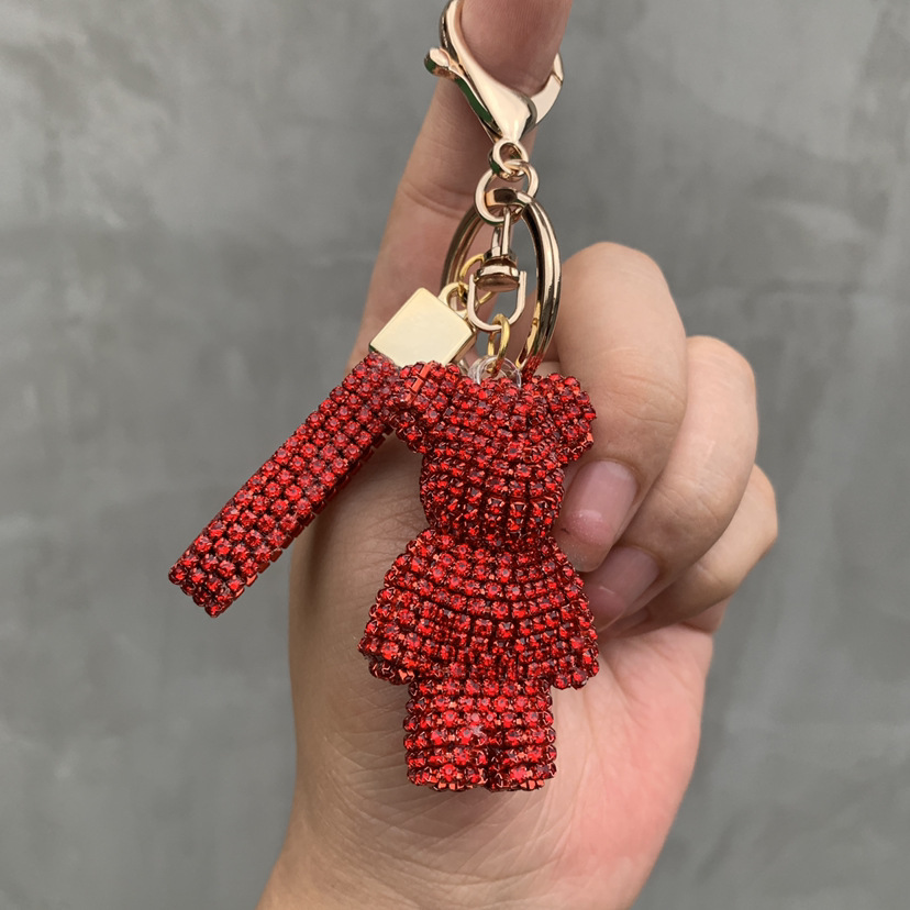 다이아몬드가 박힌 폭력적인 곰돌이 끈 열쇠고리, 창의적이고 정교한 곰돌이 자동차 장식품, 가방 장식품, 비즈니스 선물, 라이트 럭셔리스토어 가기