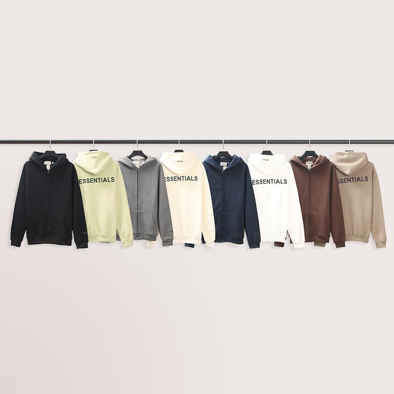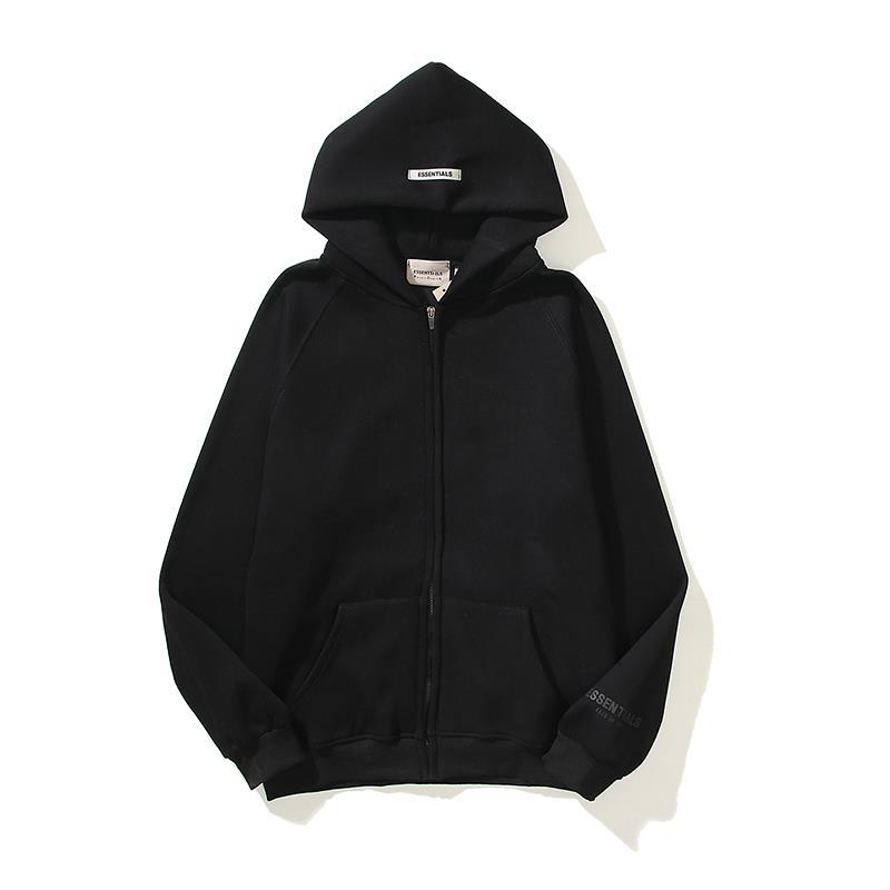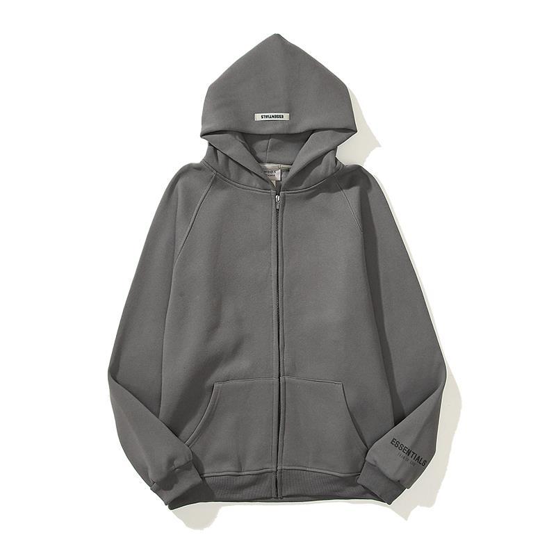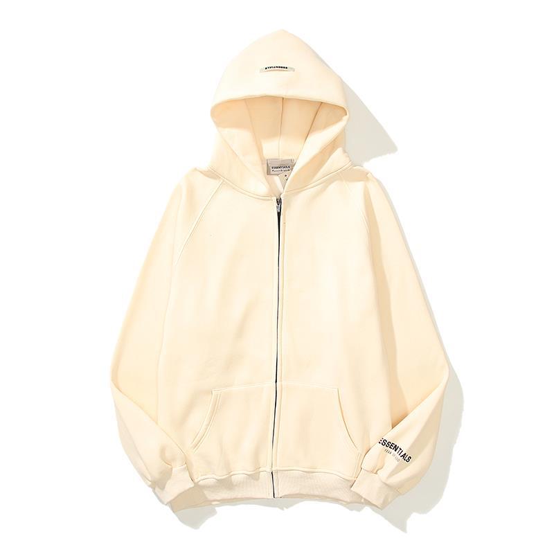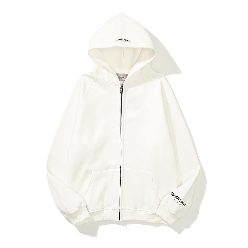 ESSENTIALS 듀플렉스 지퍼 후드 스웨터 남성용 및 여성용 하이 스트리트 느슨한 패션 GOD 재킷 남성용 공포스토어 가기