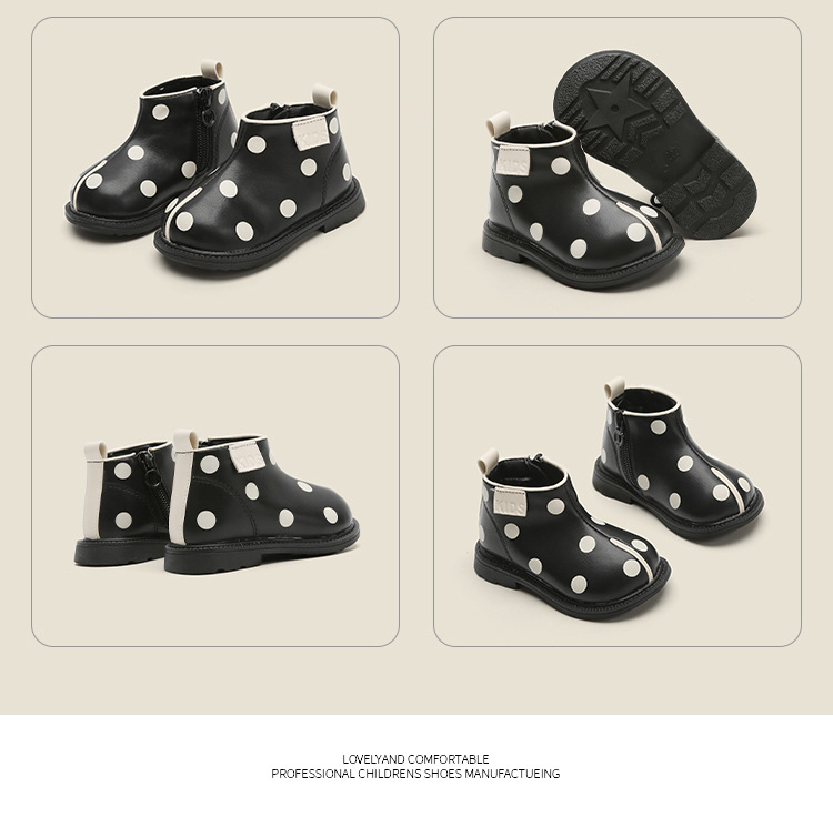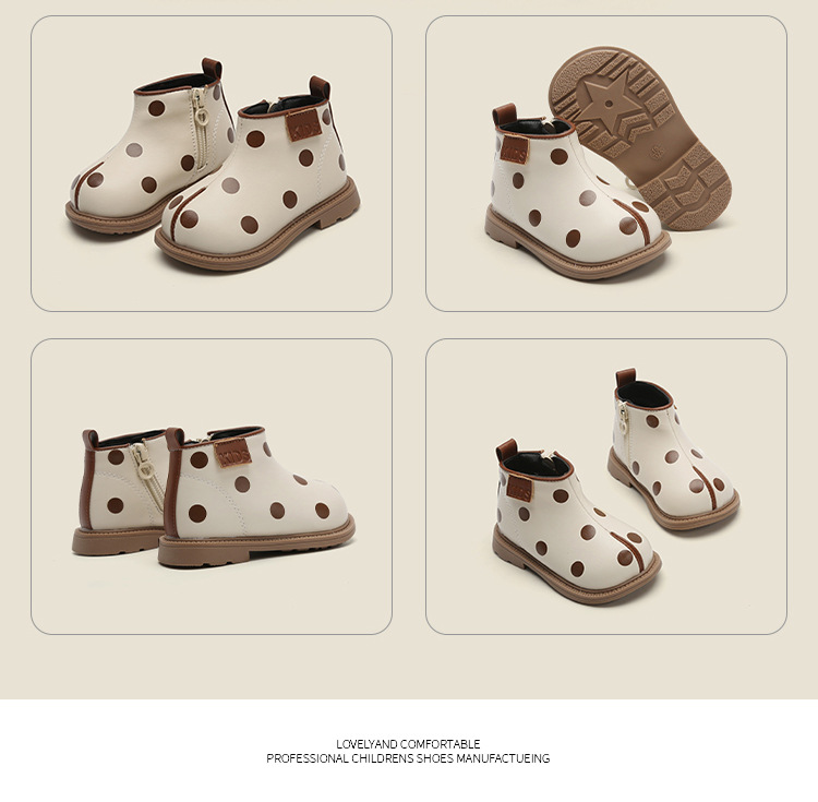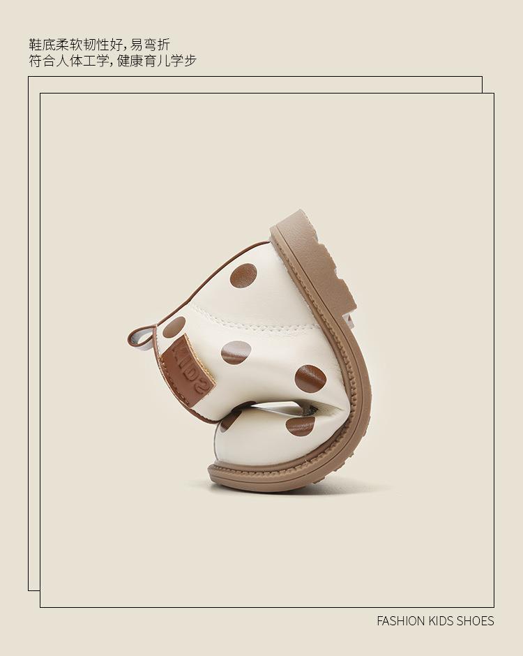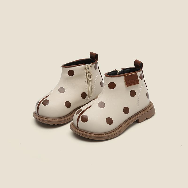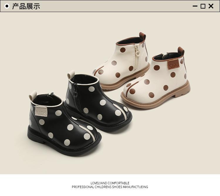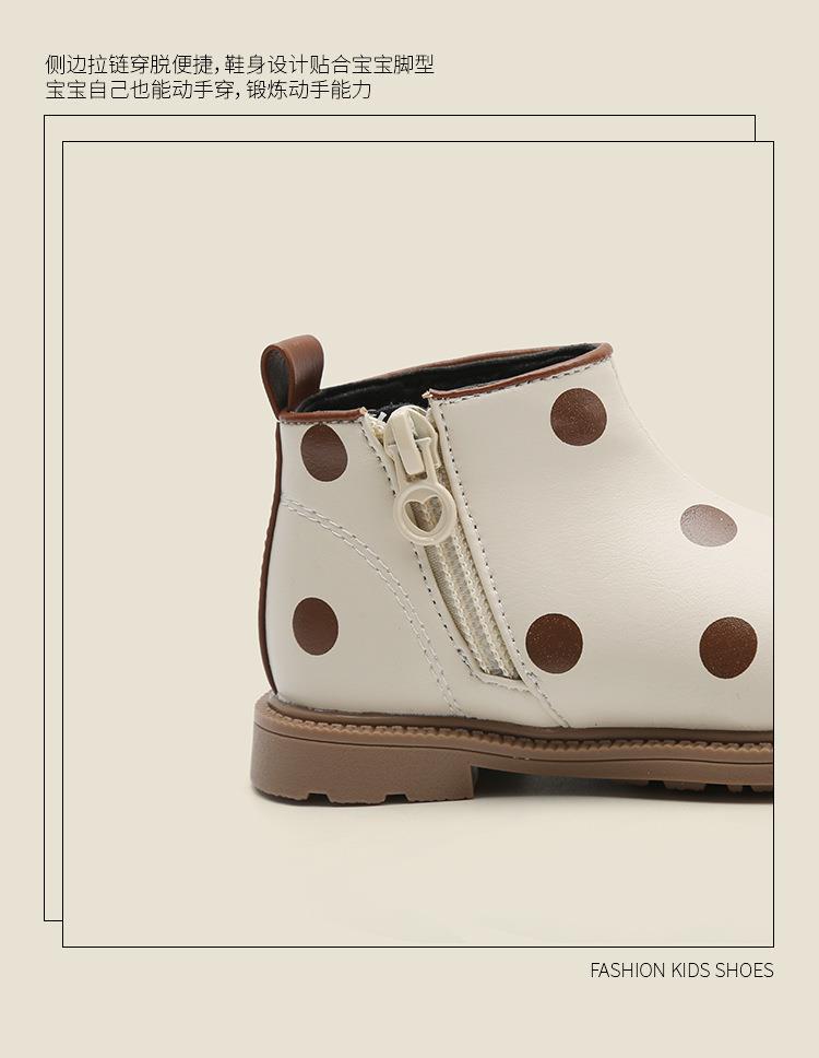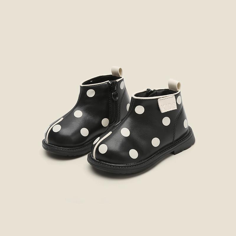 마이크 베어 어린이 마틴 부츠 아기 유아 신발 가을과 겨울 영국 스타일 발목 부츠 도트 가죽 신발 여자 기모 신발스토어 가기
