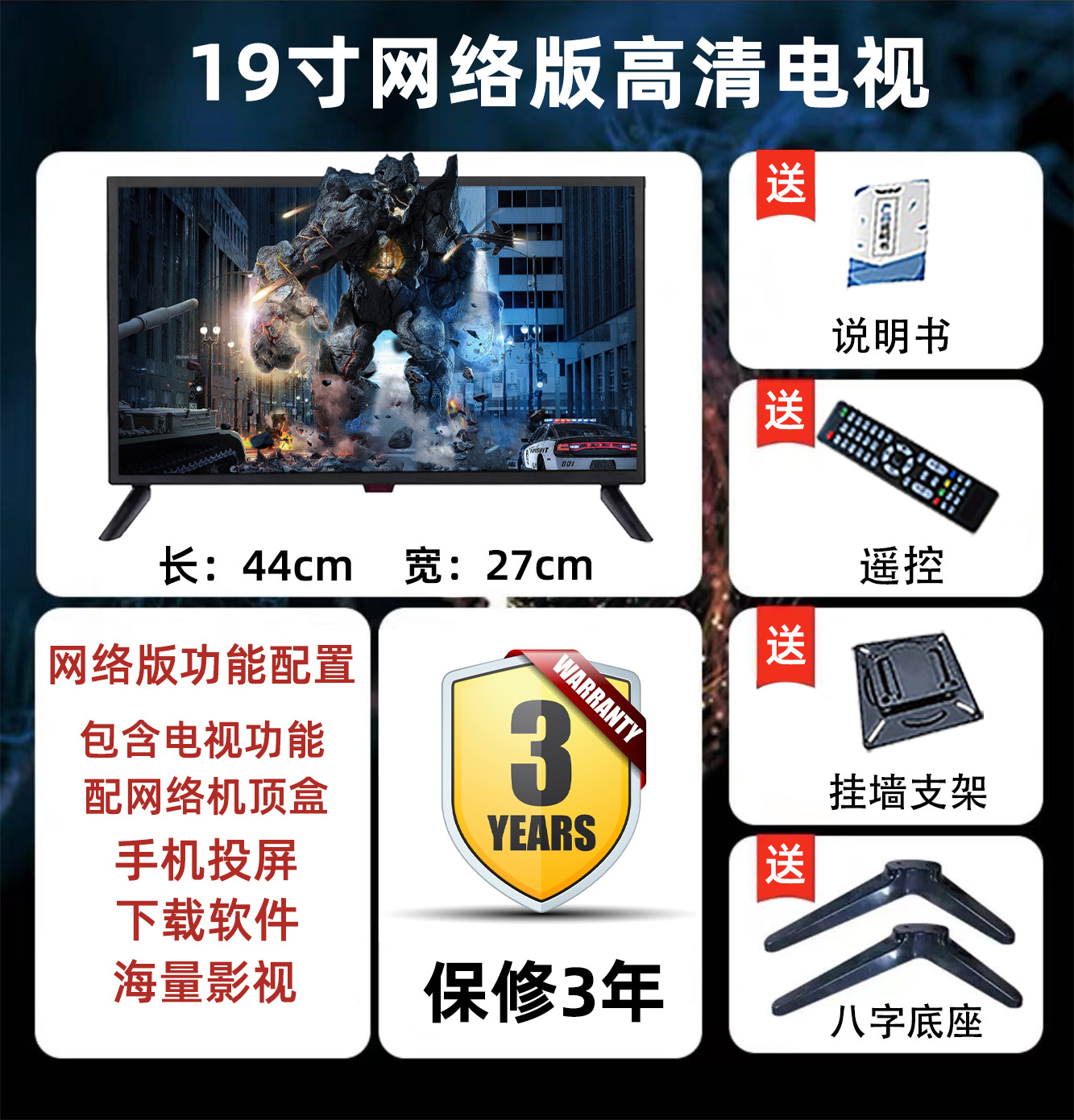 • 19 인치 HD 좁은 가장자리 TV 버전