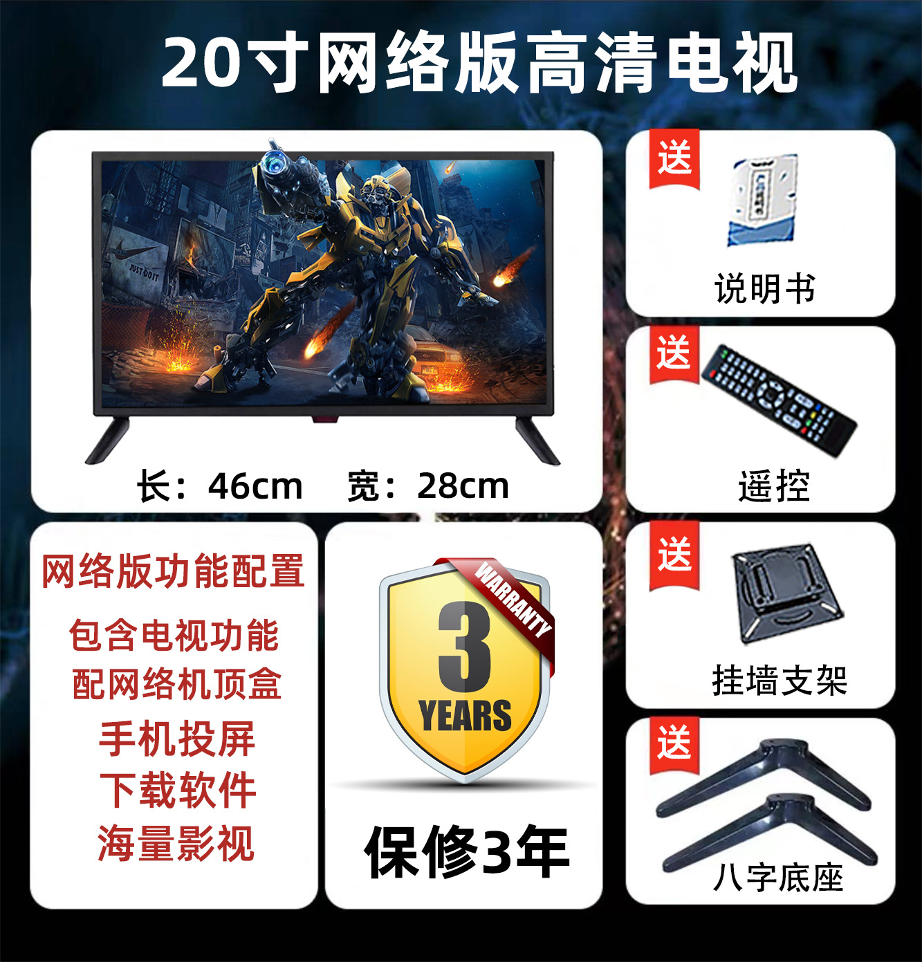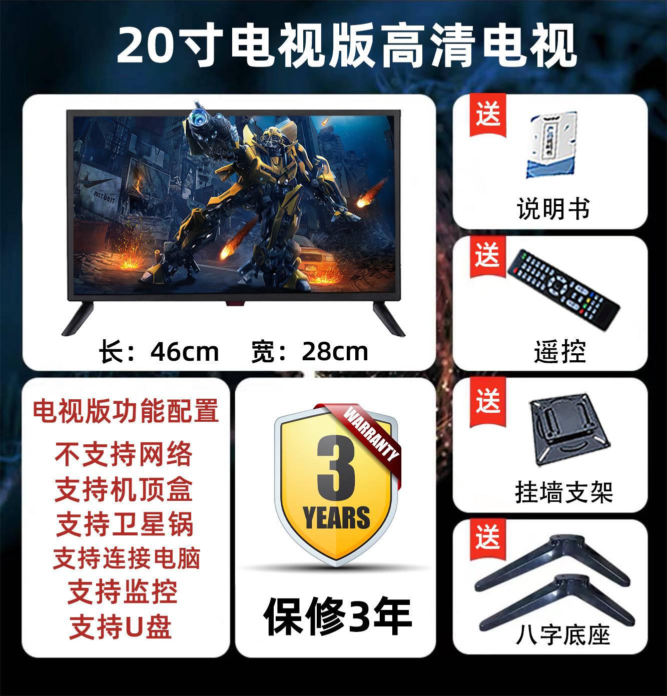 • 20 인치 HD 좁은 가장자리 TV 버전