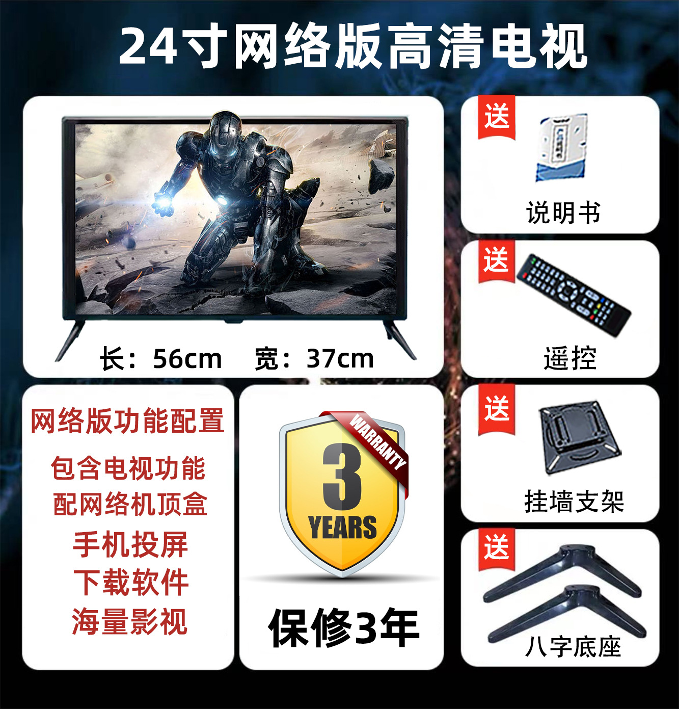 • 24 인치 HD 좁은 가장자리 TV 버전