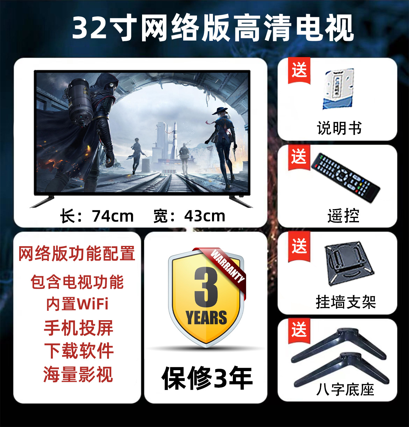 • 32 인치 HD 좁은 가장자리 WiFi 버전