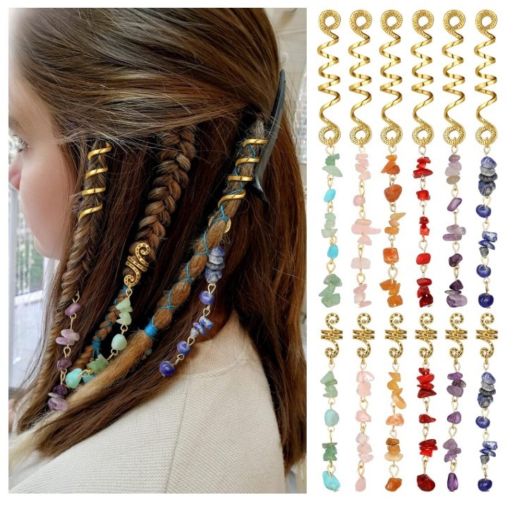 유럽과 미국의 성격 과장된 꼰 헤어 로프 개인화 된 천연석 펜던트 헤어 링 에스닉 스타일 헤드 로프 더러운 브레이드 레트로 머리핀스토어 가기