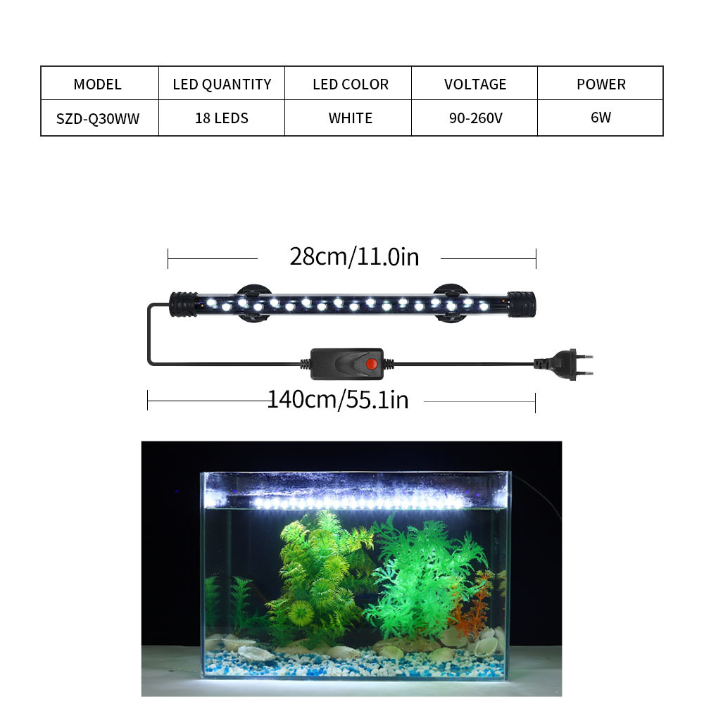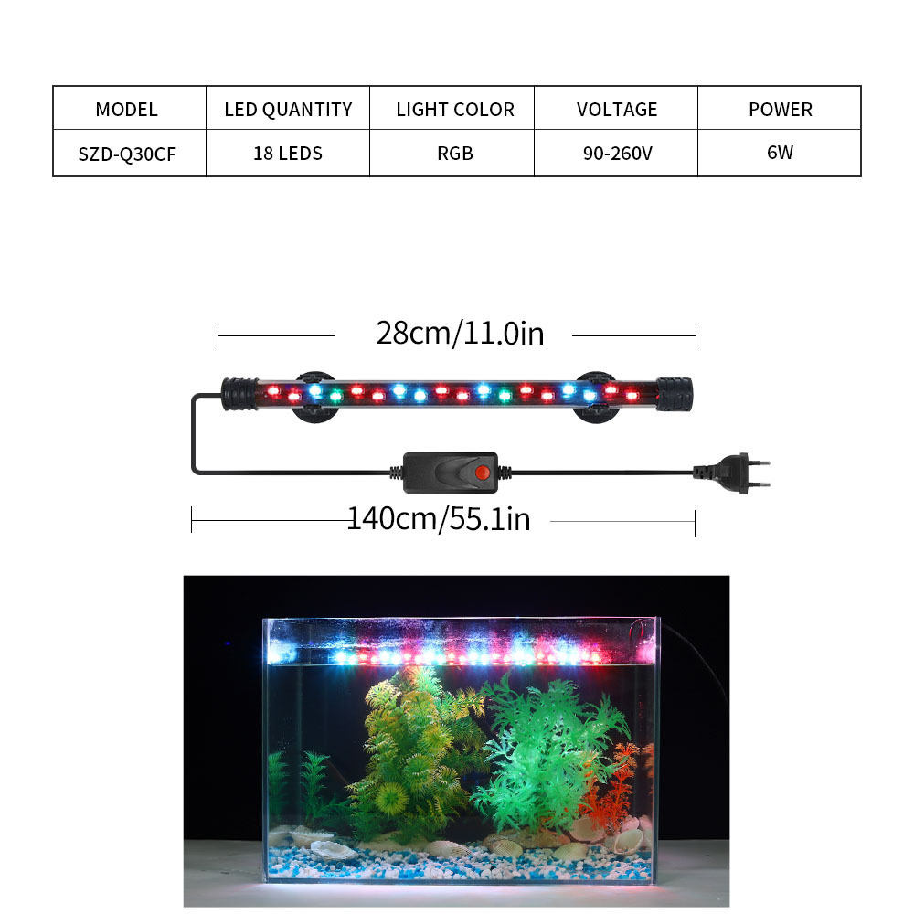 特点:防水,超强灯珠高亮度,三种光源选择:蓝白光,冰爽明亮,适合水草生长;增艳光,冰蓝、翠绿、艳红三色灯珠,提亮色度,让光彩更艳丽,适合观赏鱼;纯白光,传统明亮,纯白照明,适合各种场景。