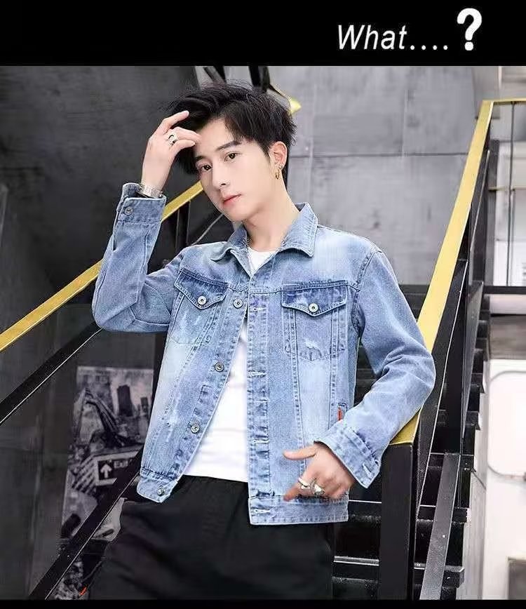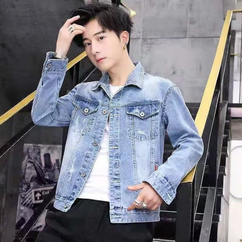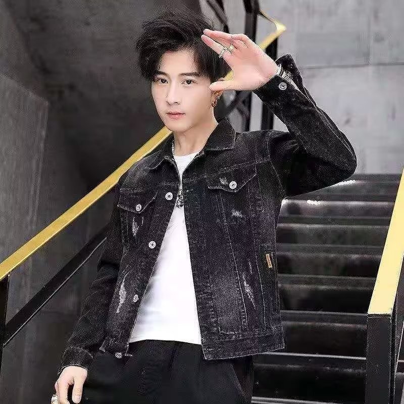 남성용 데님 재킷 봄 가을 신상 다용도 캐주얼 상의 한국 스타일 트렌디 슬림핏 자수 재킷 레트로 스타일
