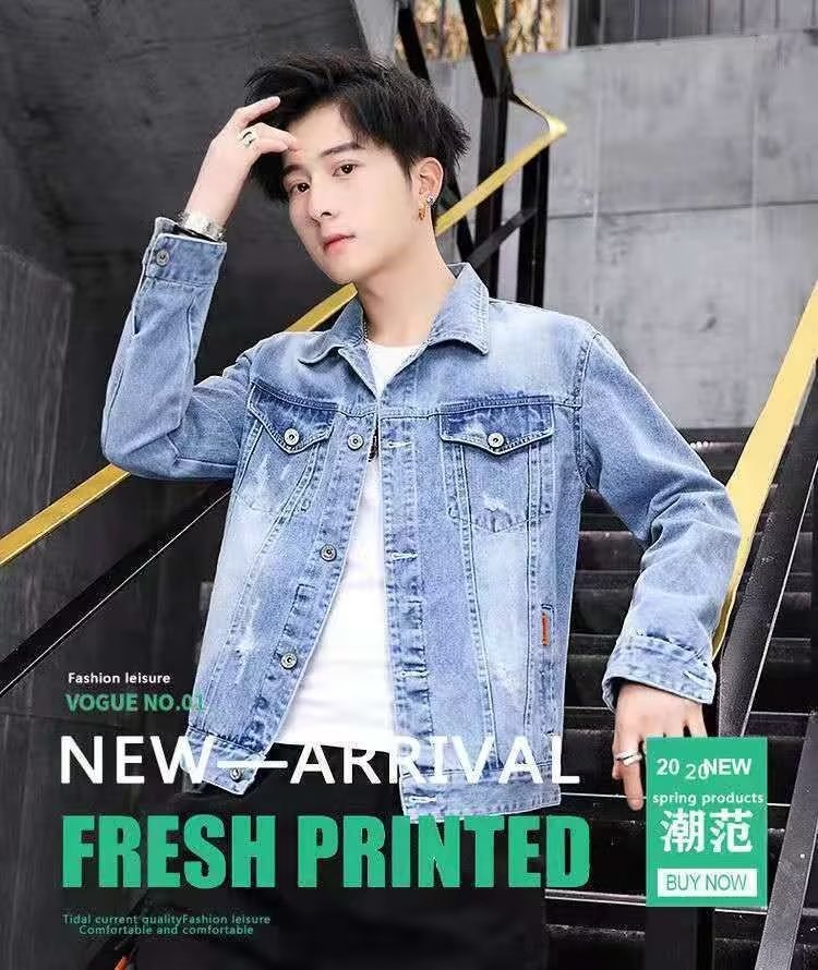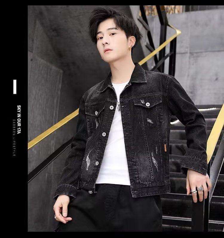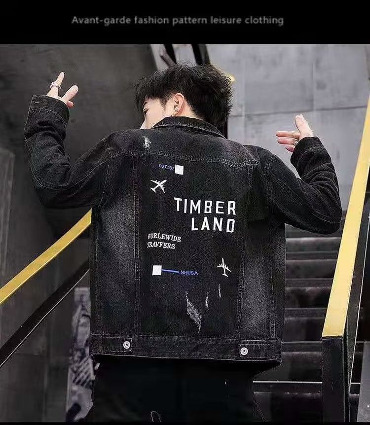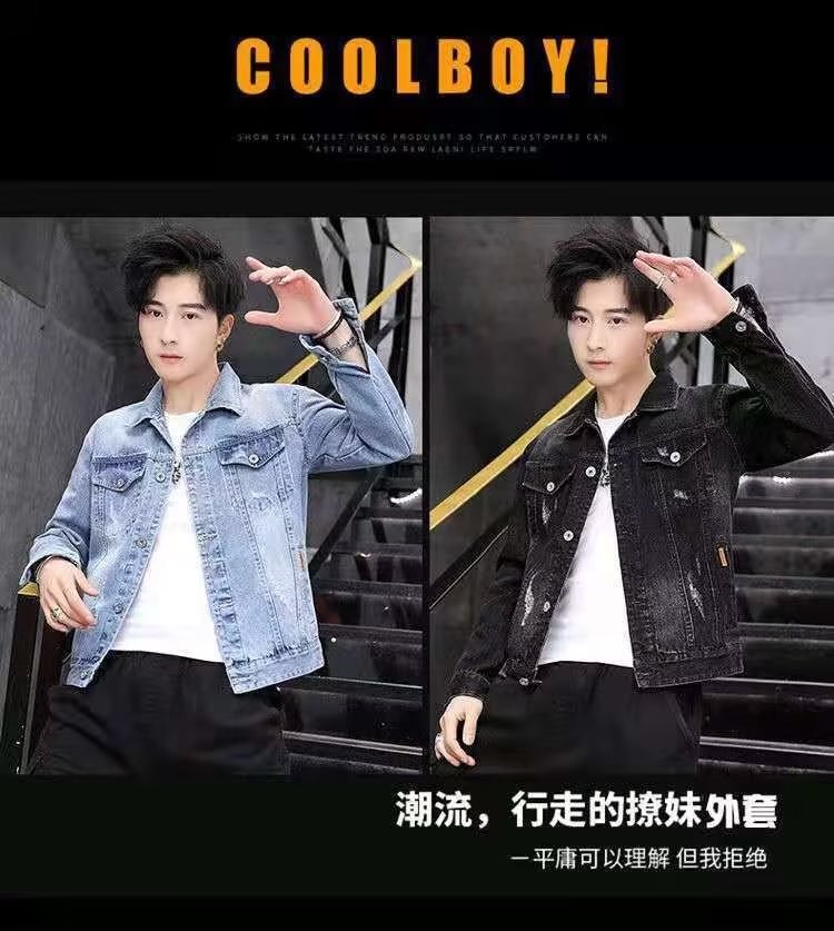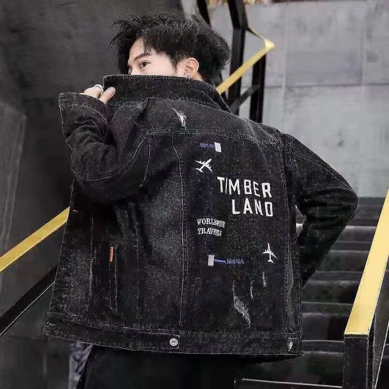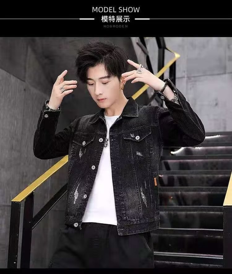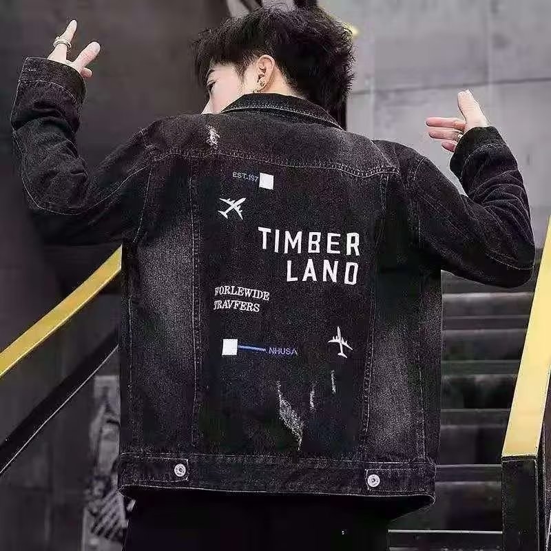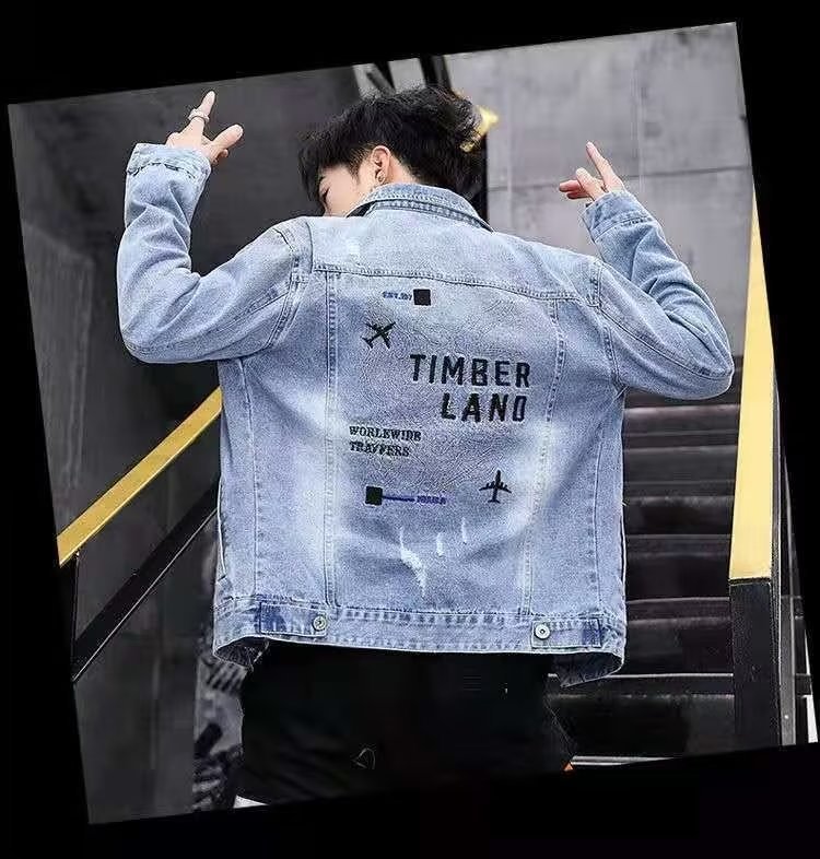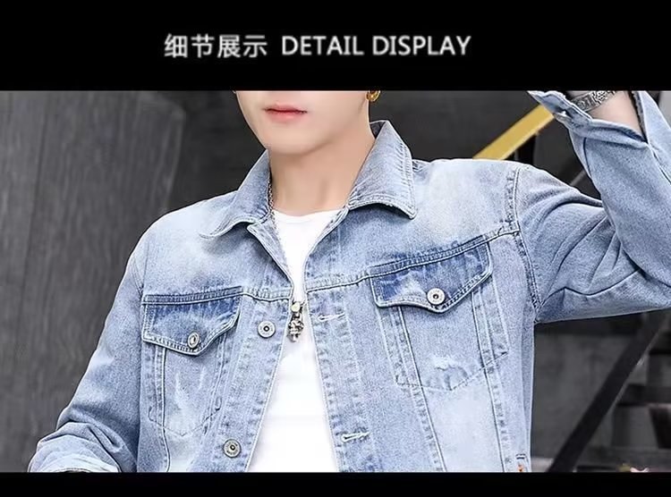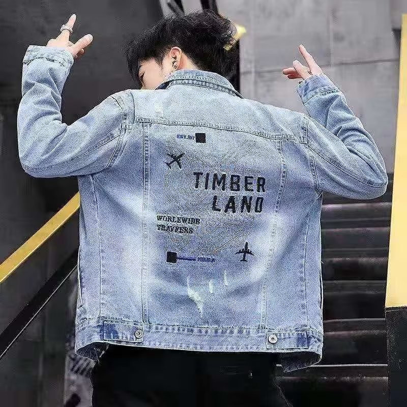 남성용 데님 재킷 봄 가을 신상 다용도 캐주얼 상의 한국 스타일 트렌디 슬림핏 자수 재킷 레트로 스타일스토어 가기