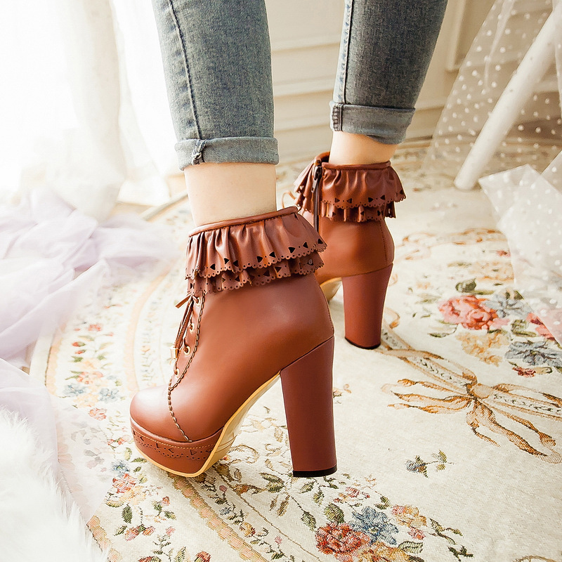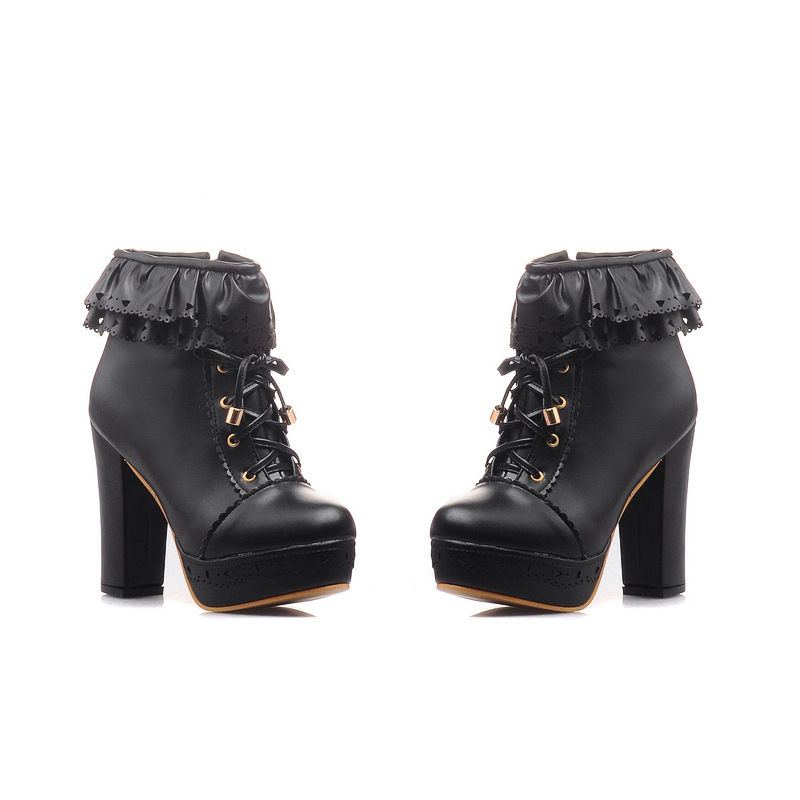 국경 간 전자 상거래 대외 무역 플러스 사이즈 여성 신발 일본 레이스 크로스 스트랩 마틴 부츠 달콤한 공주 낮은 튜브 여성 부츠