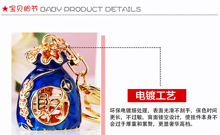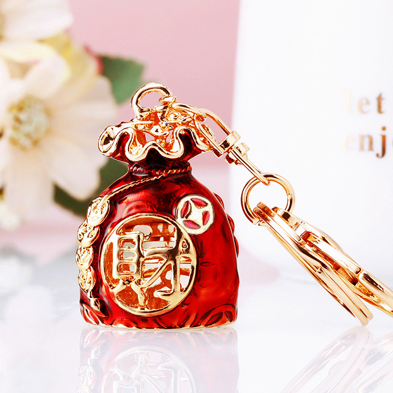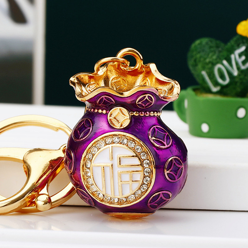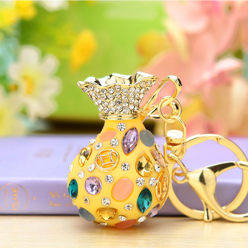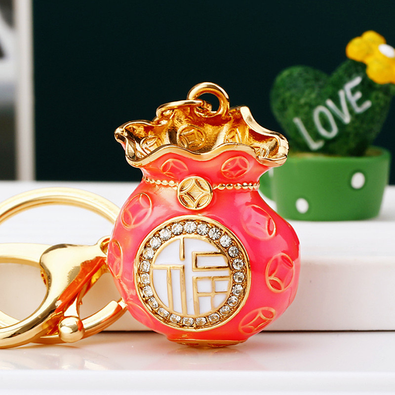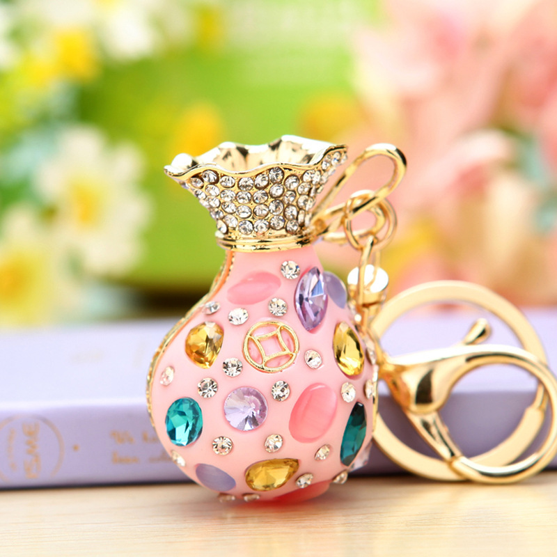럭키백 자동차 열쇠 고리 여성의 창조적 인 금속 가방 펜던트 열쇠 고리 다이아몬드 비즈니스 선물 도매스토어 가기