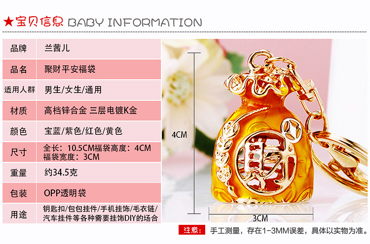 럭키백 자동차 열쇠 고리 여성의 창조적 인 금속 가방 펜던트 열쇠 고리 다이아몬드 비즈니스 선물 도매