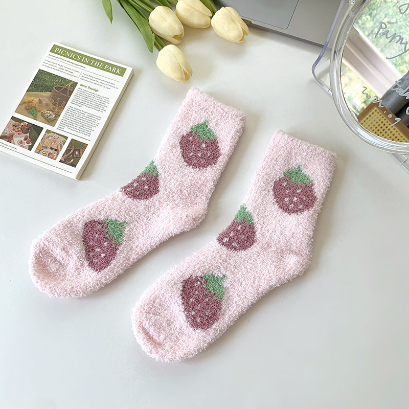 산호 벨벳 양말 여성용 크림 패션 미드 튜브 여성 양말 겨울 두꺼운 기모 홈 문 수면 양말스토어 가기