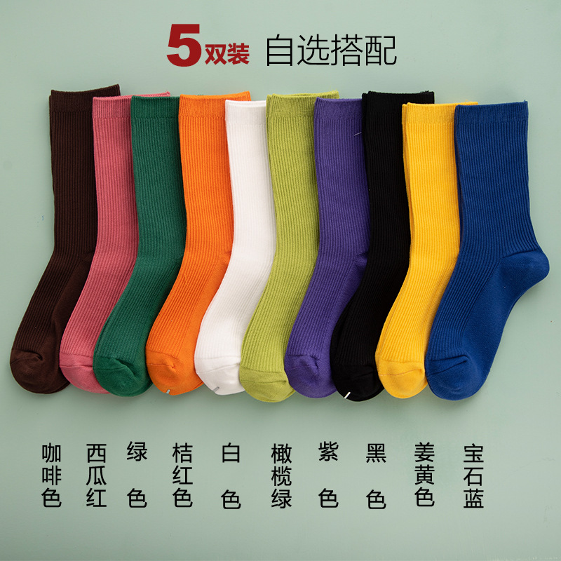양말 여성 가을과 겨울 단색 여성 양말 스포츠 조커 조수 캔디 컬러 긴면 양말 머리카락 세대스토어 가기