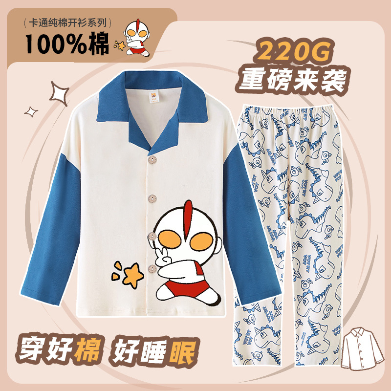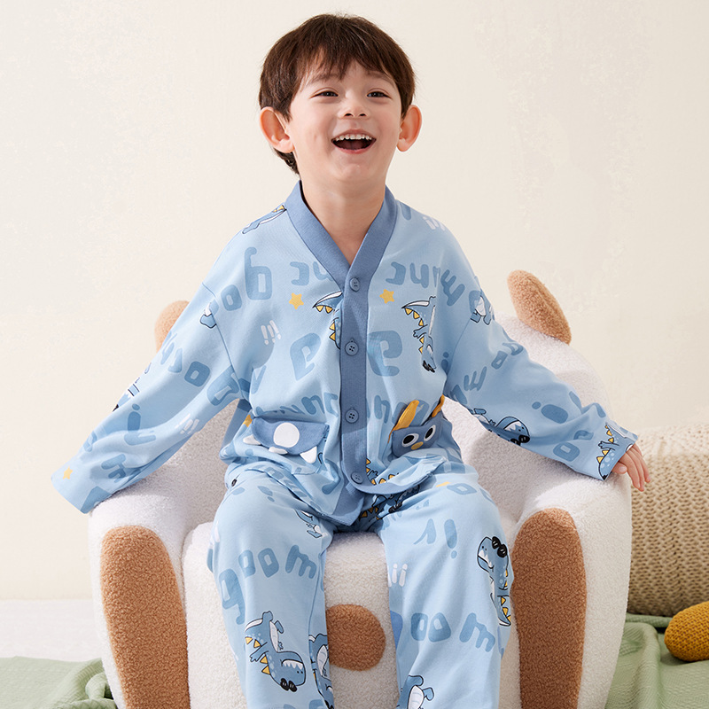 소년 잠옷 봄과 가을 순면 긴팔 리틀 보이 중간 및 큰 어린이 아기 어린이 가을 가정 옷 순면 세트스토어 가기